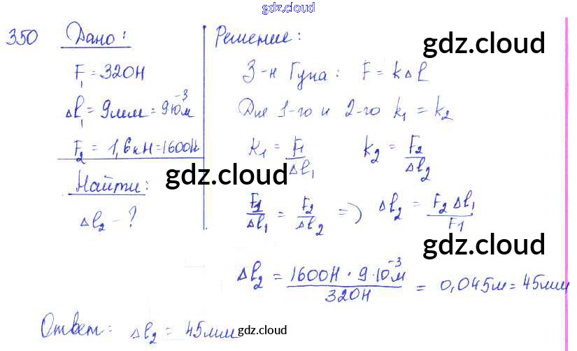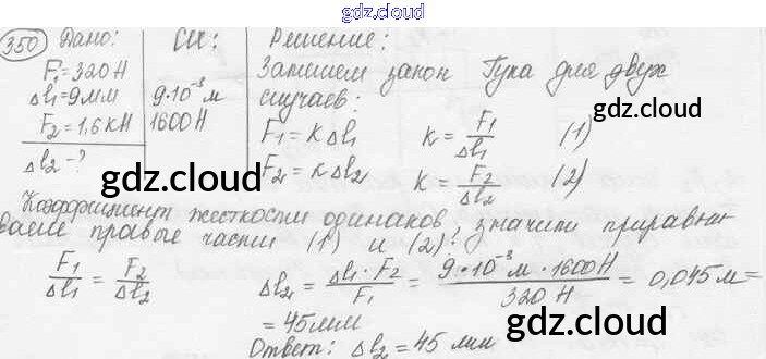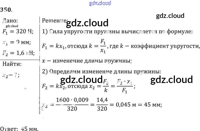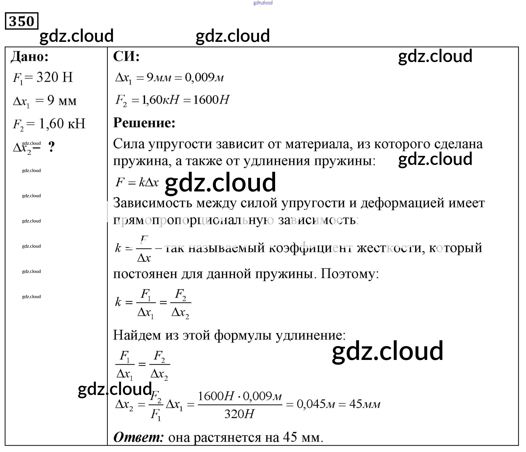Ответ на задание 350 Сборник задач Физика за 7, 8, 9 (седьмой, восьмой, девятый) класс Лукашик, Иванова 2011