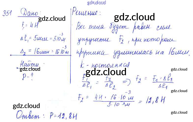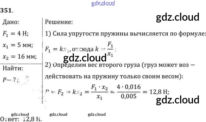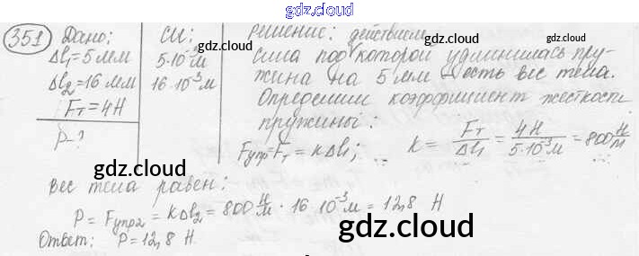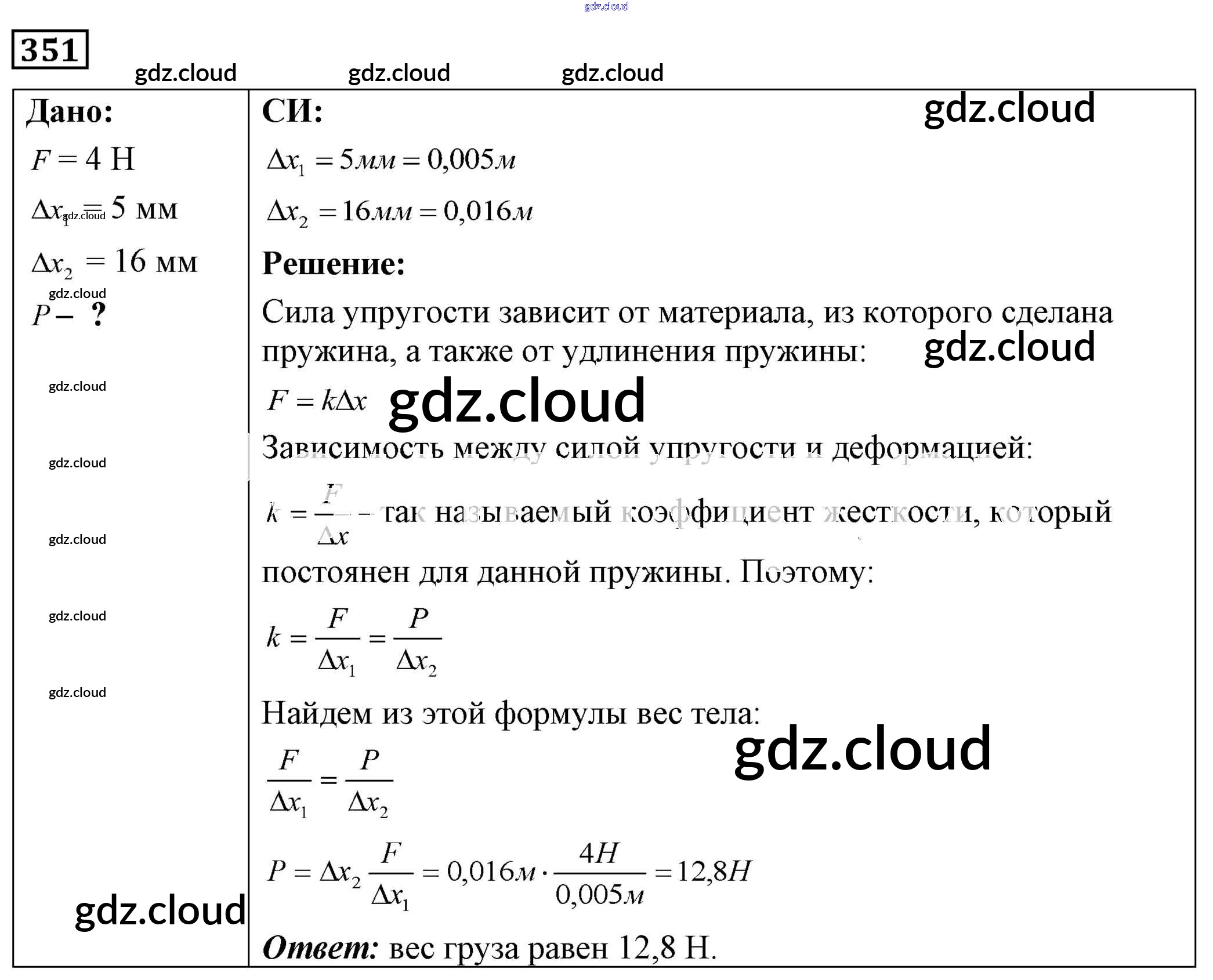 Ответ на задание 351 Сборник задач Физика за 7, 8, 9 (седьмой, восьмой, девятый) класс Лукашик, Иванова 2011