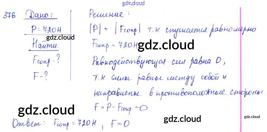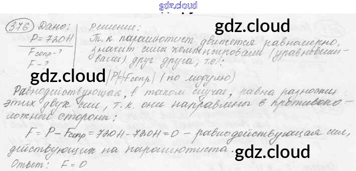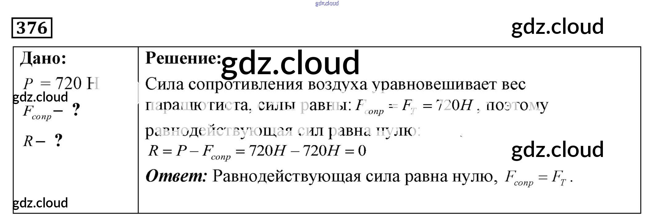 Ответ на задание 376 Сборник задач Физика за 7, 8, 9 (седьмой, восьмой, девятый) класс Лукашик, Иванова 2011