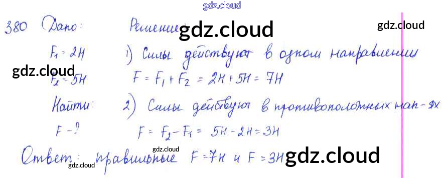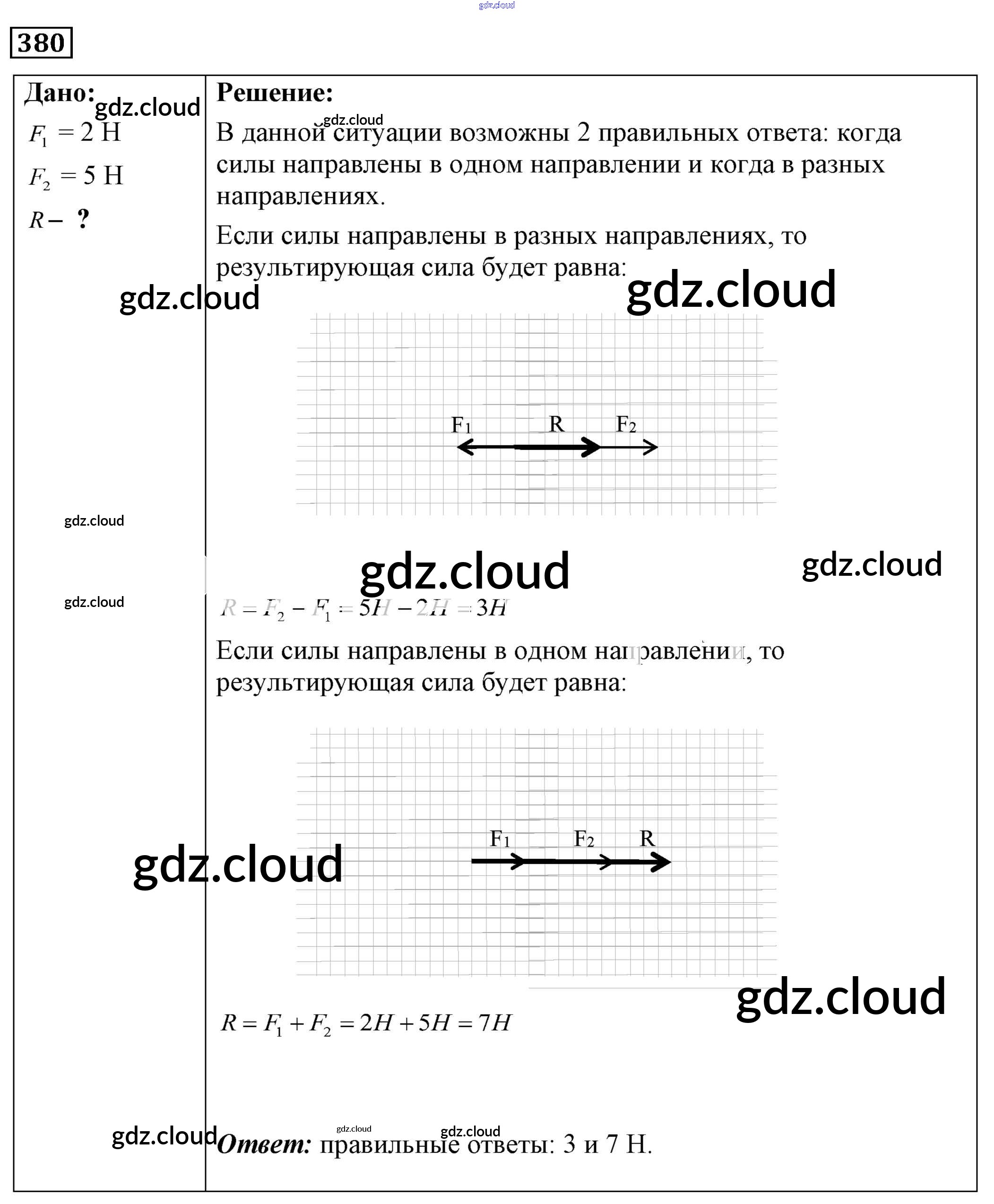 Ответ на задание 380 Сборник задач Физика за 7, 8, 9 (седьмой, восьмой, девятый) класс Лукашик, Иванова 2011