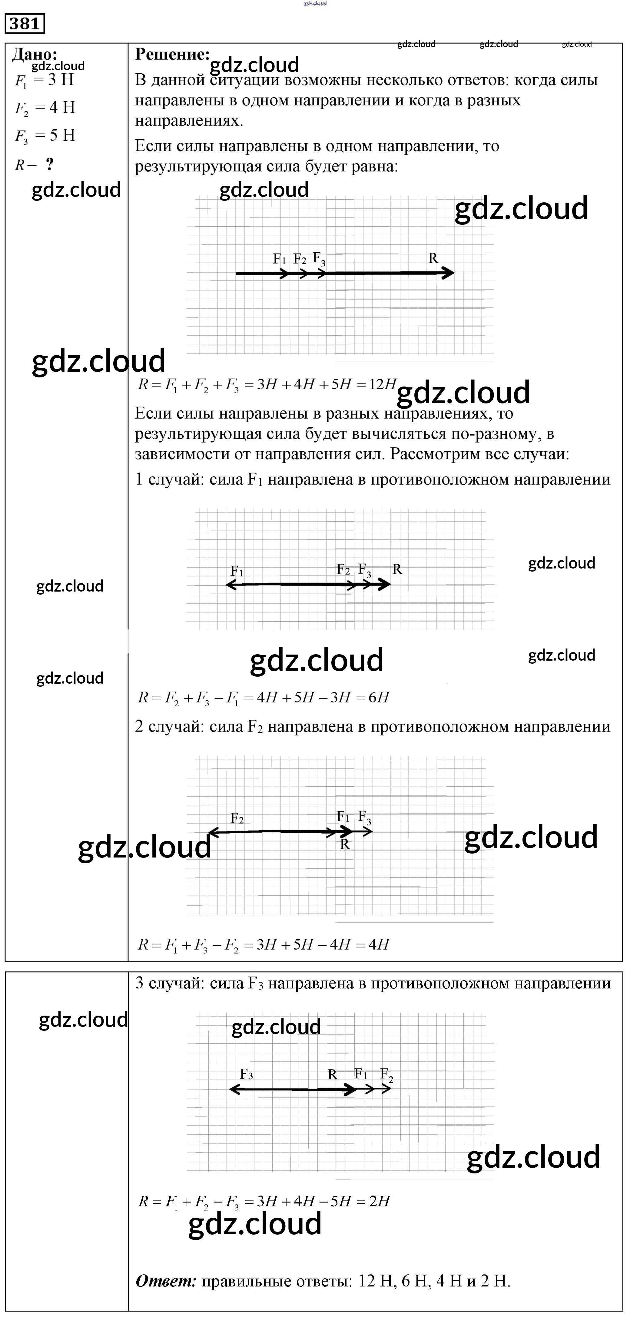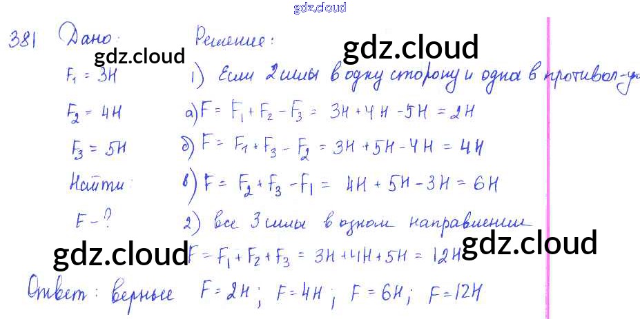 Ответ на задание 381 Сборник задач Физика за 7, 8, 9 (седьмой, восьмой, девятый) класс Лукашик, Иванова 2011
