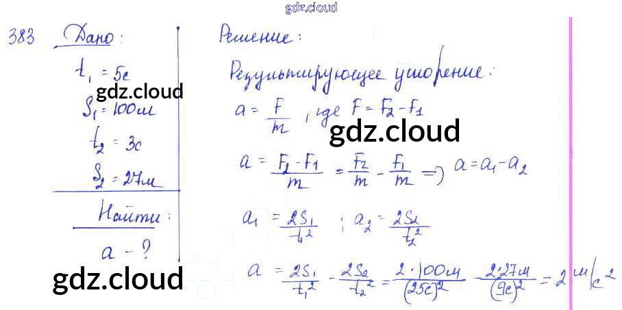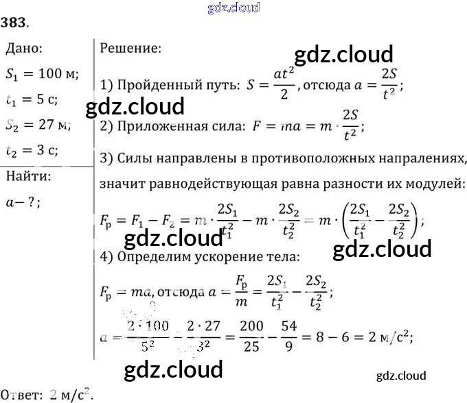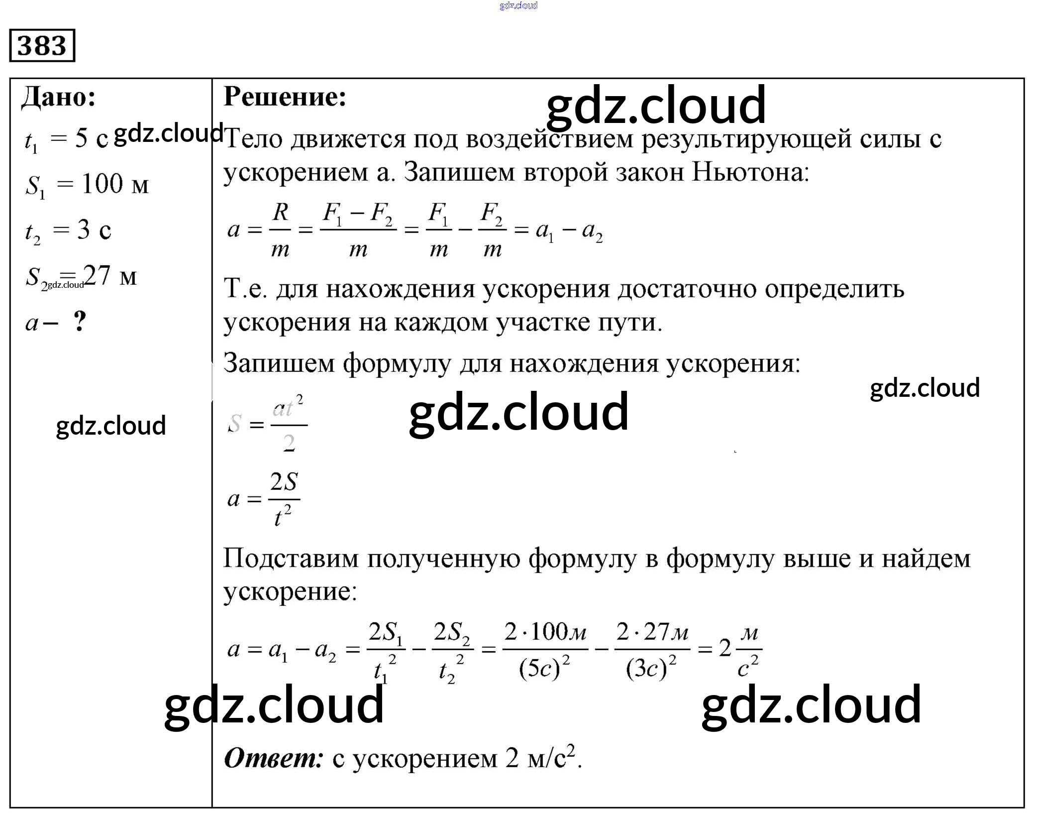 Ответ на задание 383 Сборник задач Физика за 7, 8, 9 (седьмой, восьмой, девятый) класс Лукашик, Иванова 2011