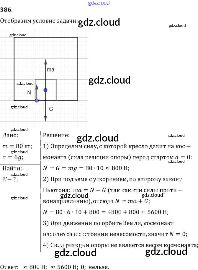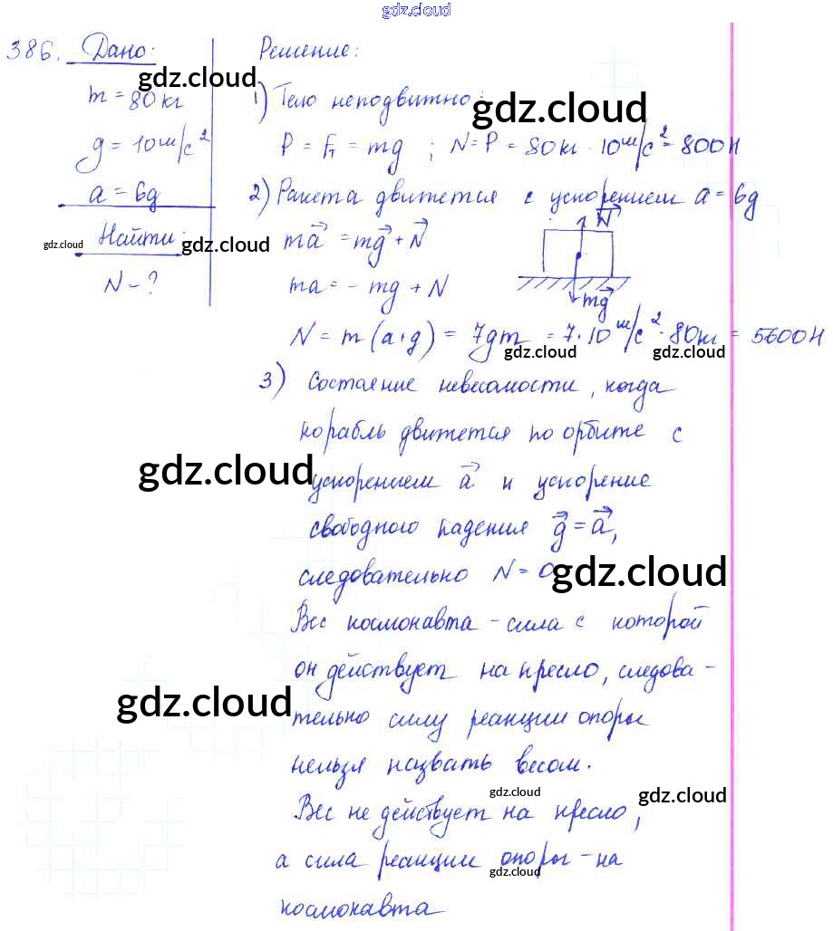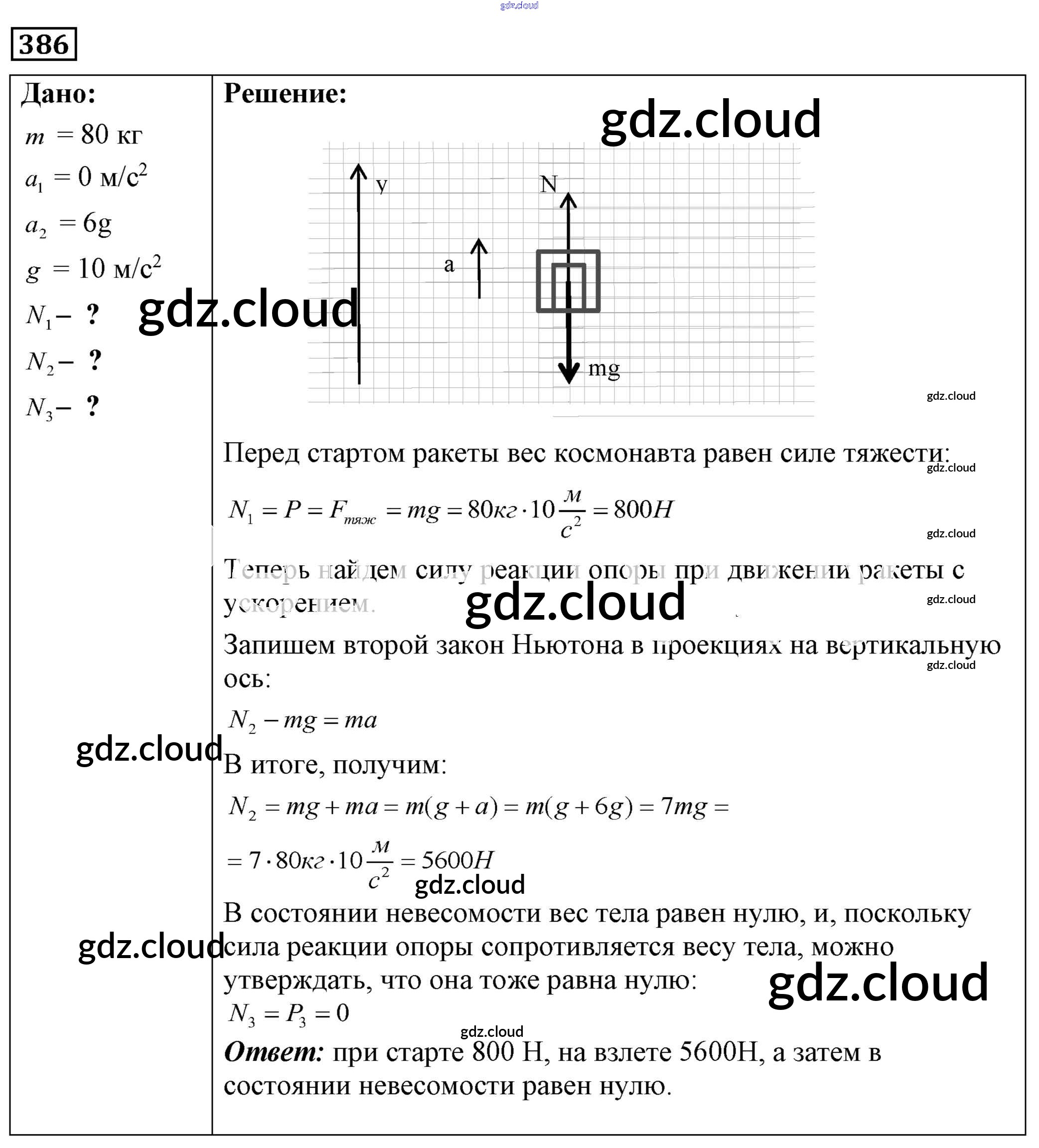 Ответ на задание 386 Сборник задач Физика за 7, 8, 9 (седьмой, восьмой, девятый) класс Лукашик, Иванова 2011