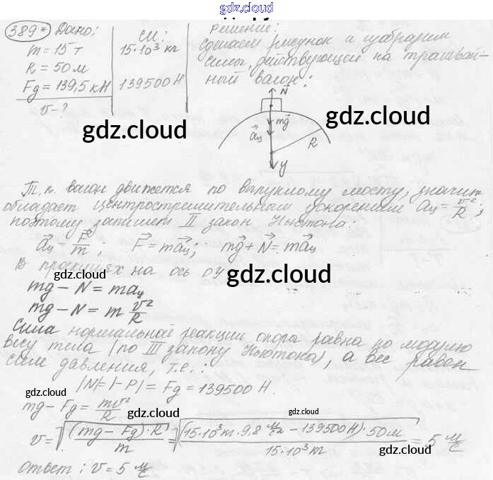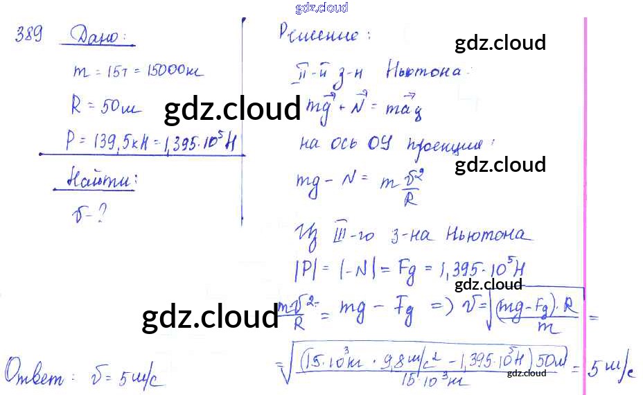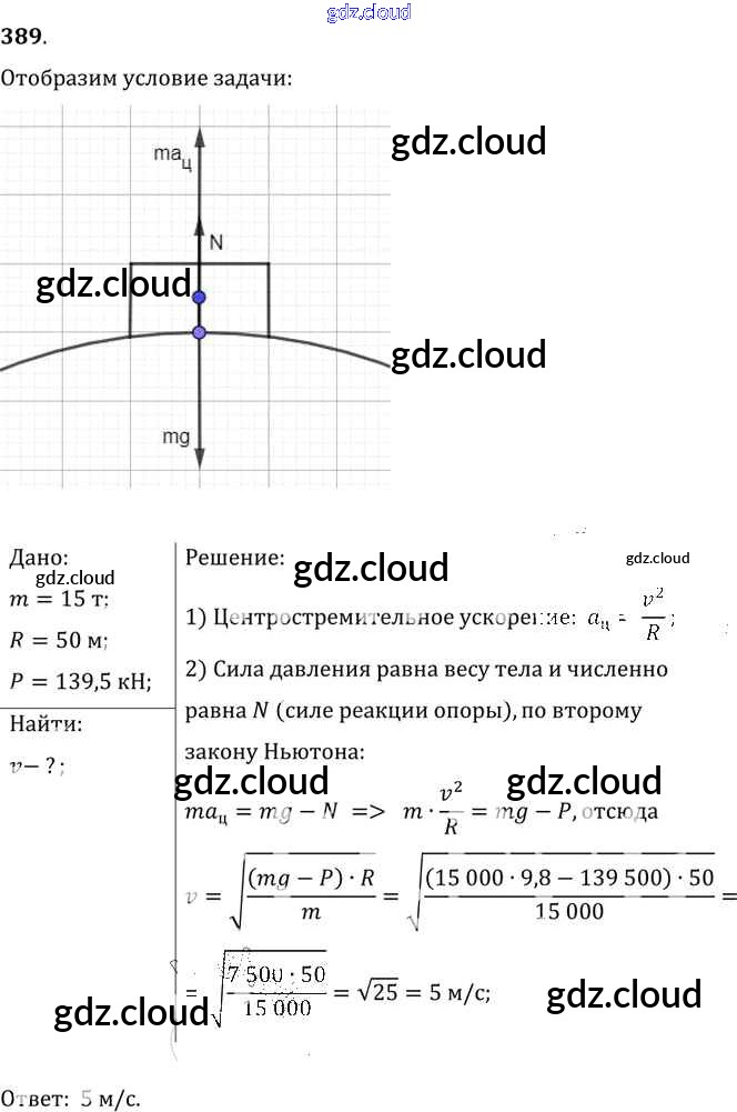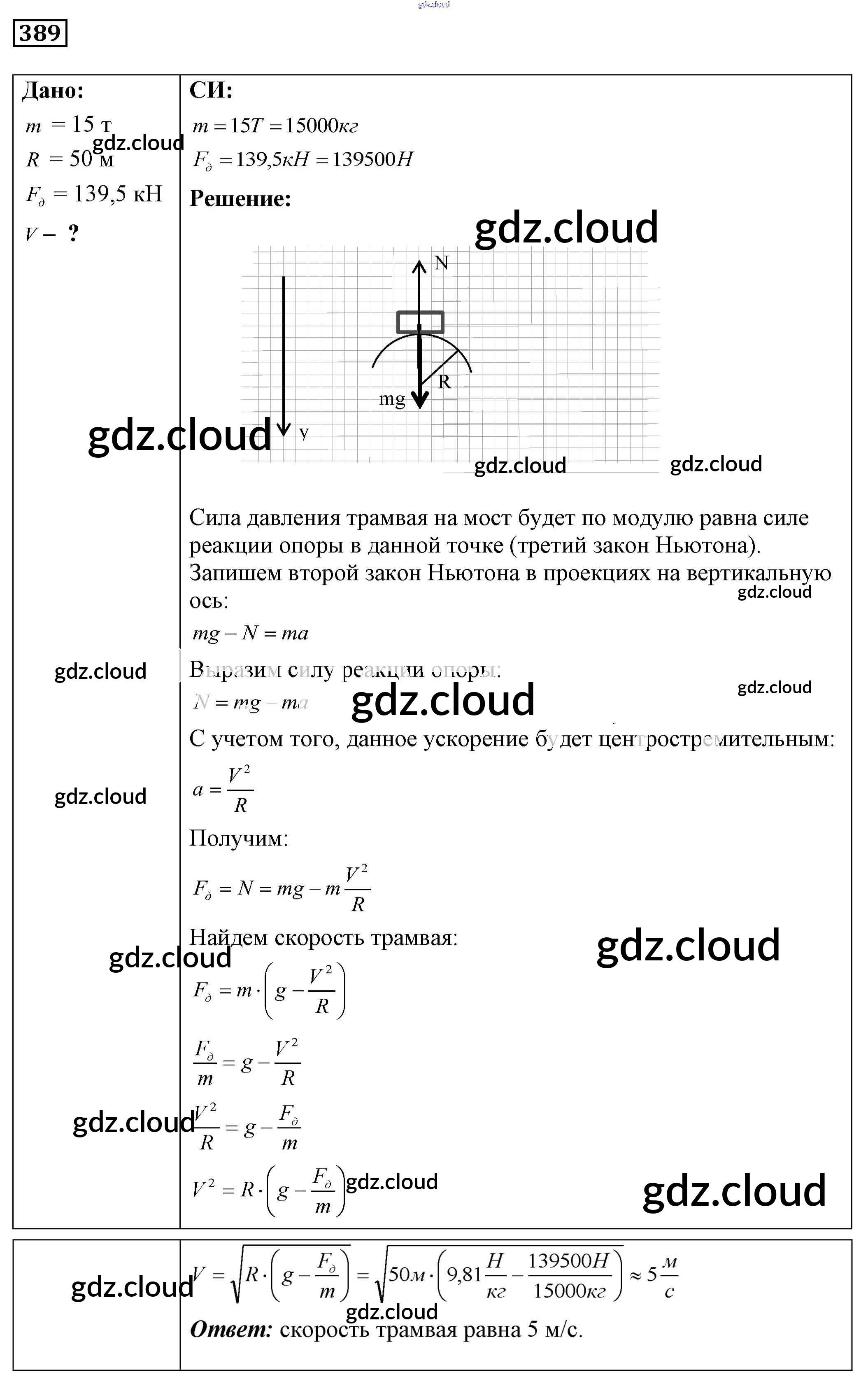 Ответ на задание 389 Сборник задач Физика за 7, 8, 9 (седьмой, восьмой, девятый) класс Лукашик, Иванова 2011