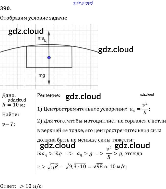Ответ на задание 390 Сборник задач Физика за 7, 8, 9 (седьмой, восьмой, девятый) класс Лукашик, Иванова 2011