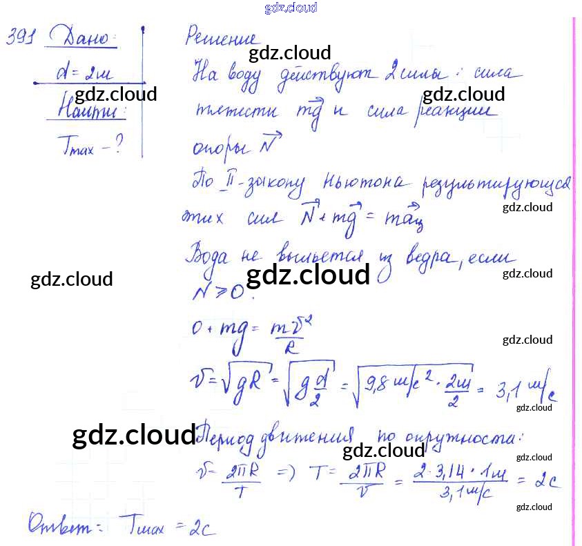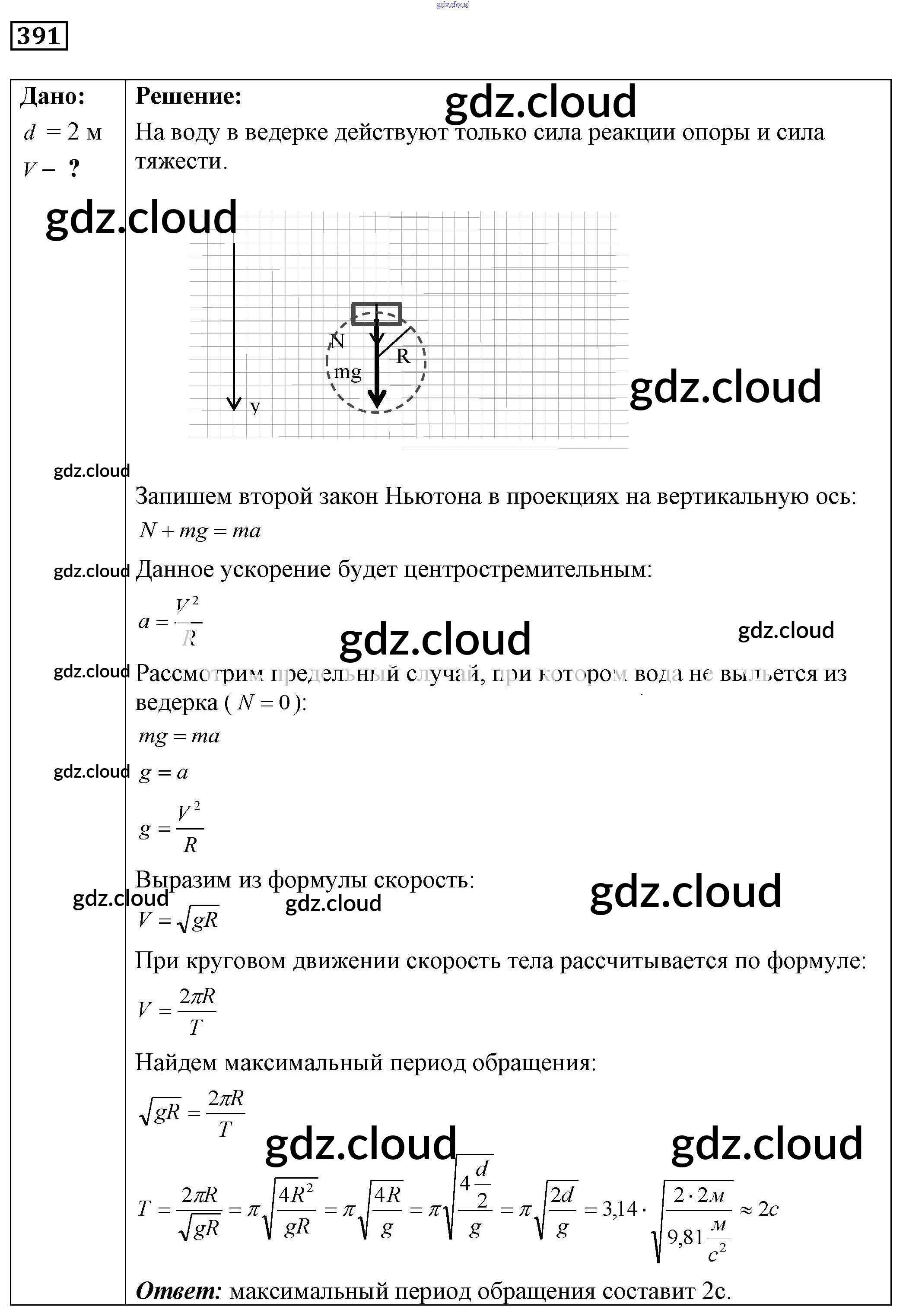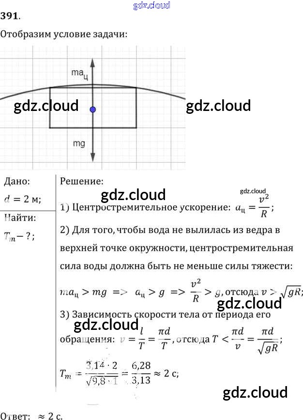Ответ на задание 391 Сборник задач Физика за 7, 8, 9 (седьмой, восьмой, девятый) класс Лукашик, Иванова 2011