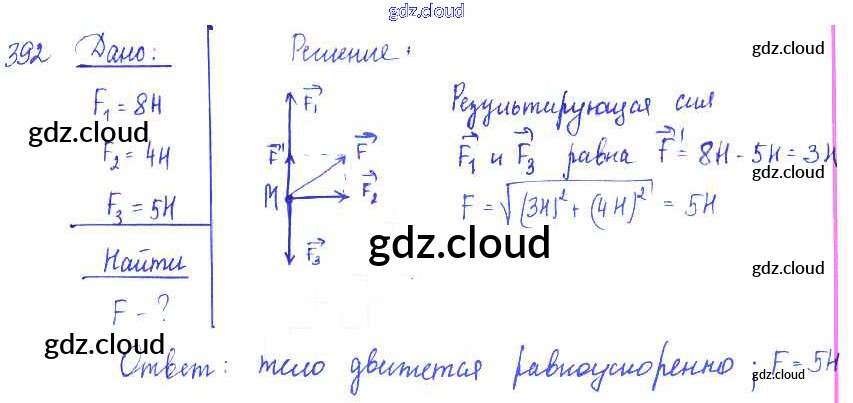 Ответ на задание 392 Сборник задач Физика за 7, 8, 9 (седьмой, восьмой, девятый) класс Лукашик, Иванова 2011