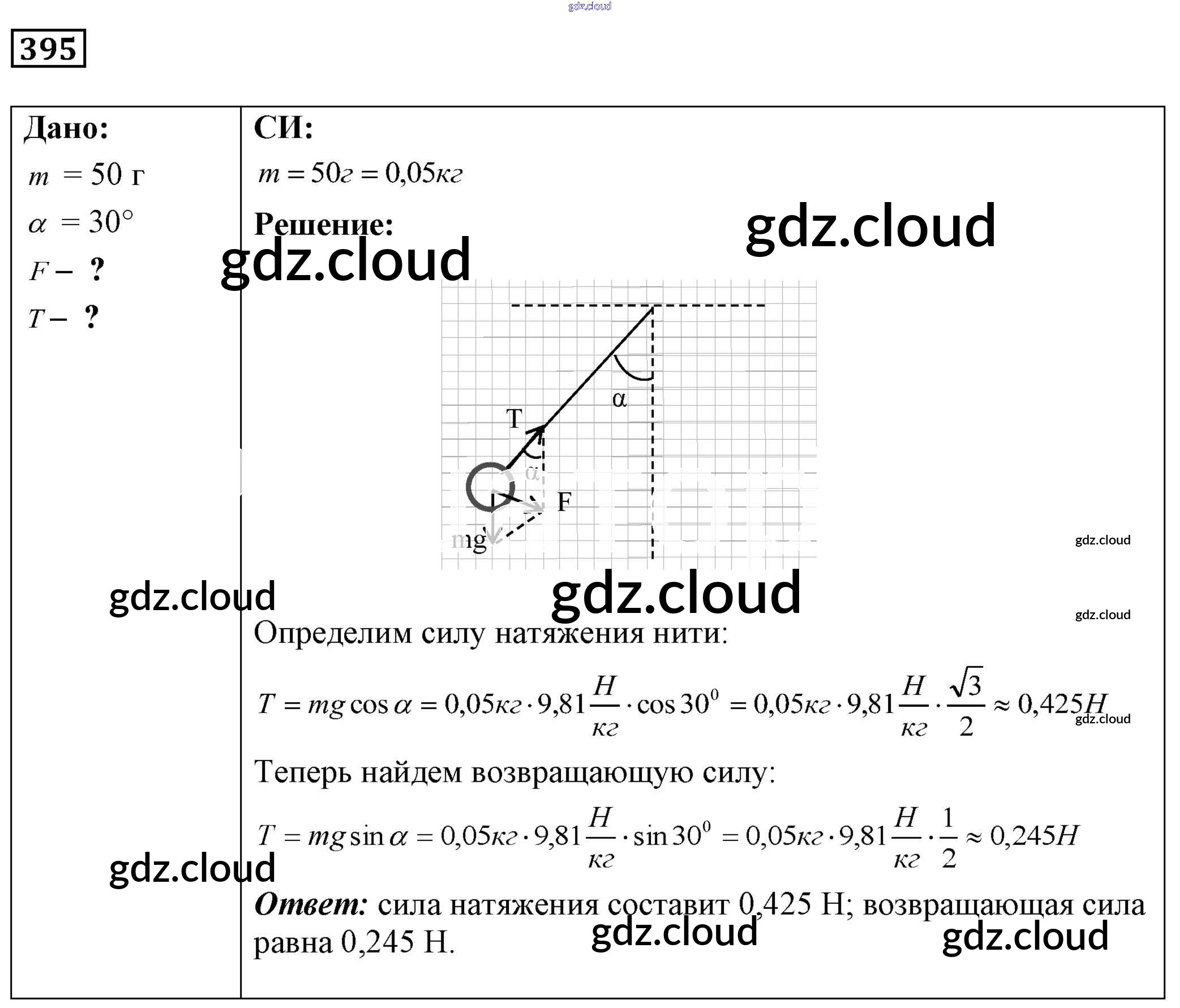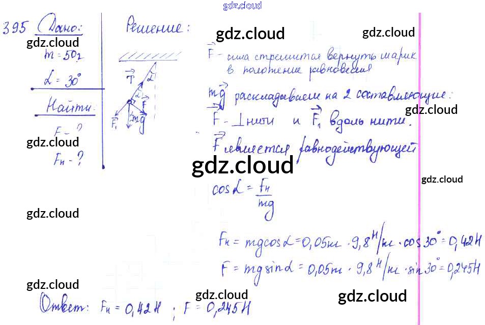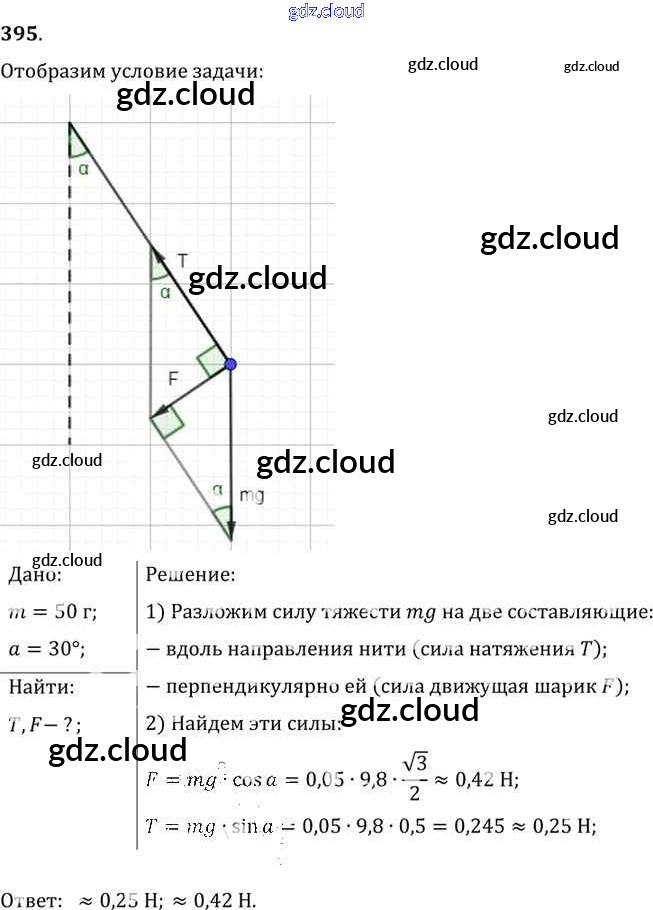 Ответ на задание 395 Сборник задач Физика за 7, 8, 9 (седьмой, восьмой, девятый) класс Лукашик, Иванова 2011