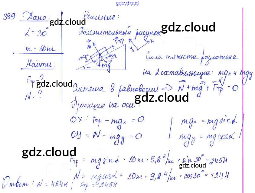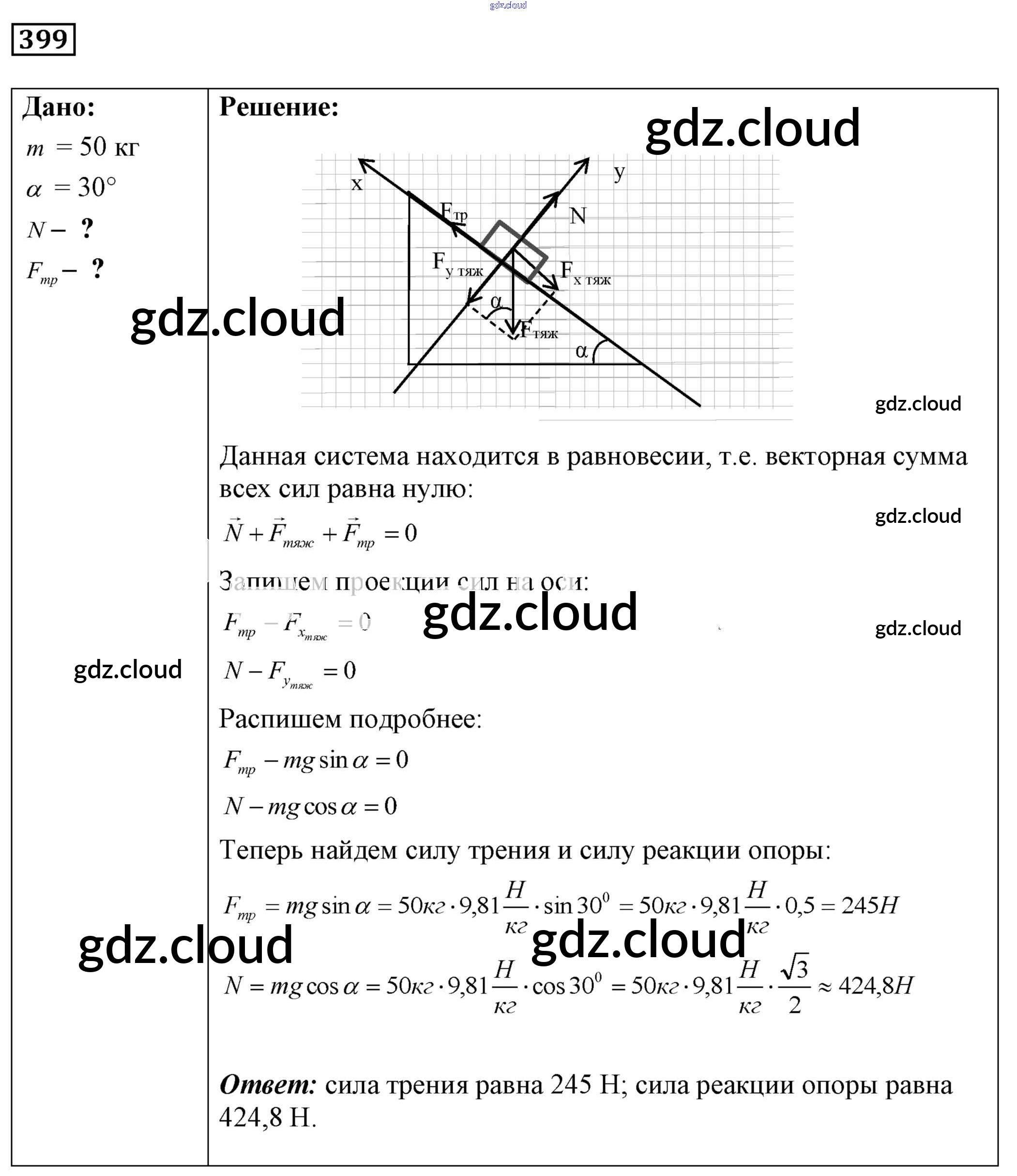 Ответ на задание 399 Сборник задач Физика за 7, 8, 9 (седьмой, восьмой, девятый) класс Лукашик, Иванова 2011