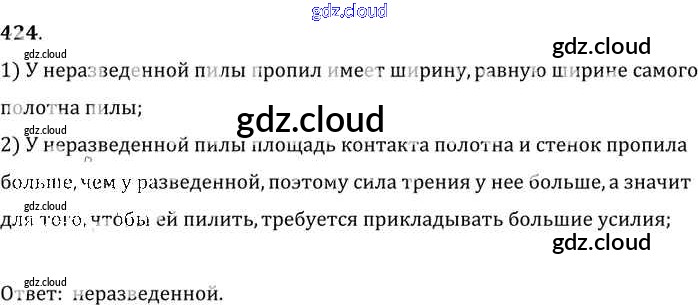 Ответ на задание 424 Сборник задач Физика за 7, 8, 9 (седьмой, восьмой, девятый) класс Лукашик, Иванова 2011