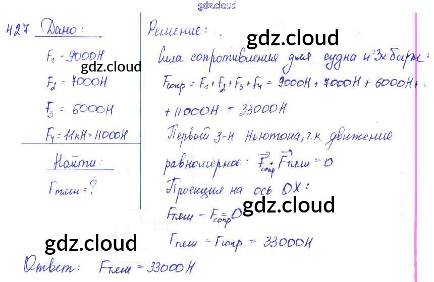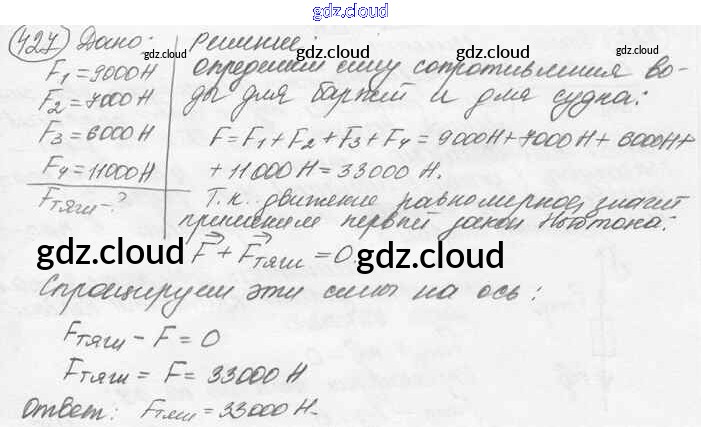 Ответ на задание 427 Сборник задач Физика за 7, 8, 9 (седьмой, восьмой, девятый) класс Лукашик, Иванова 2011