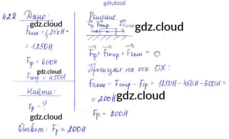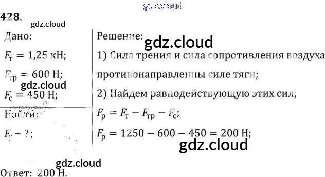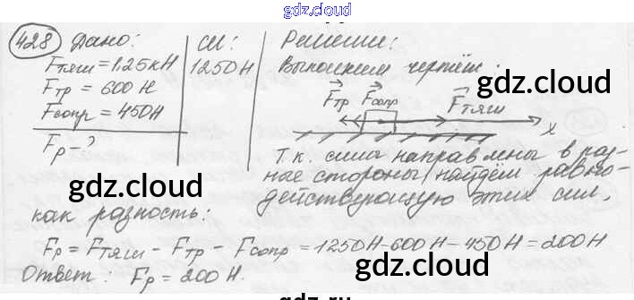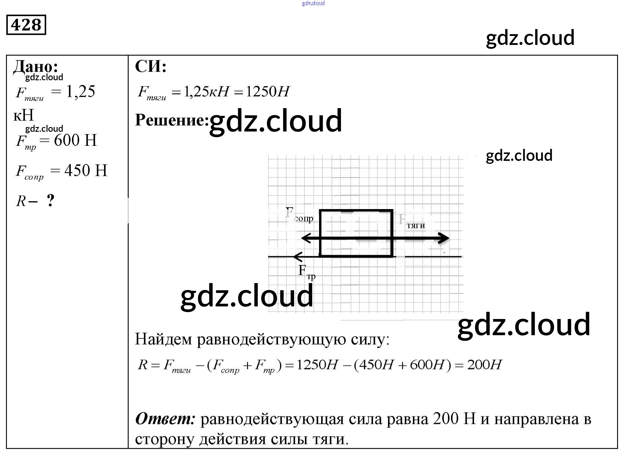 Ответ на задание 428 Сборник задач Физика за 7, 8, 9 (седьмой, восьмой, девятый) класс Лукашик, Иванова 2011