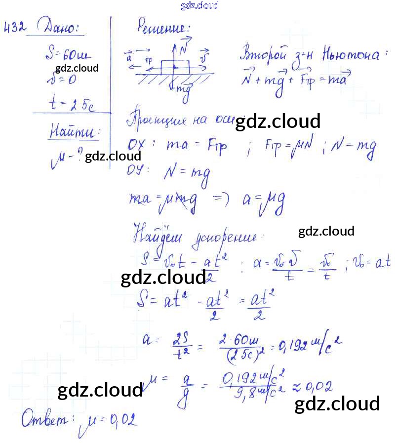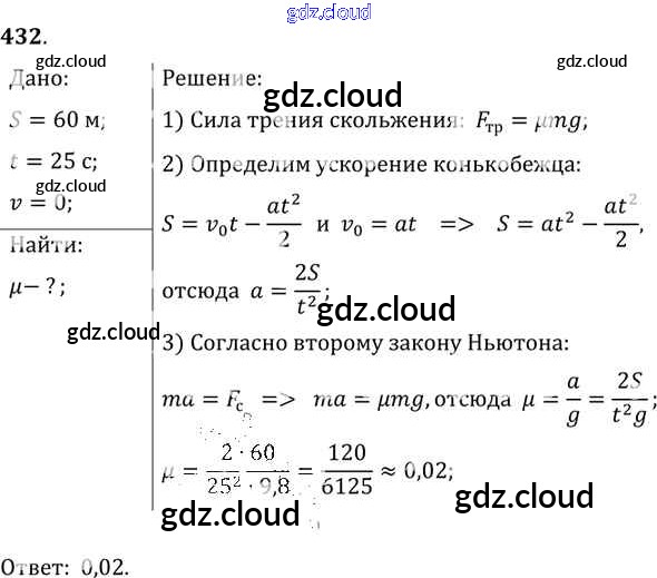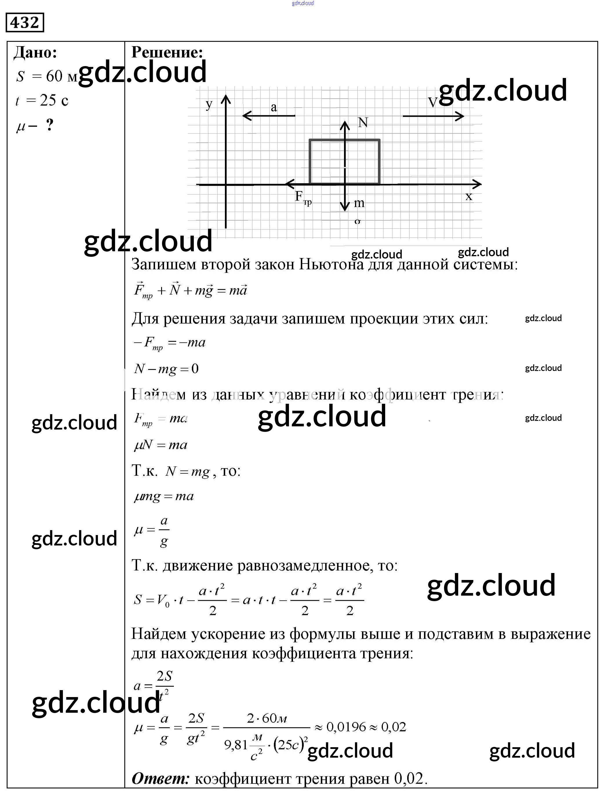 Ответ на задание 432 Сборник задач Физика за 7, 8, 9 (седьмой, восьмой, девятый) класс Лукашик, Иванова 2011