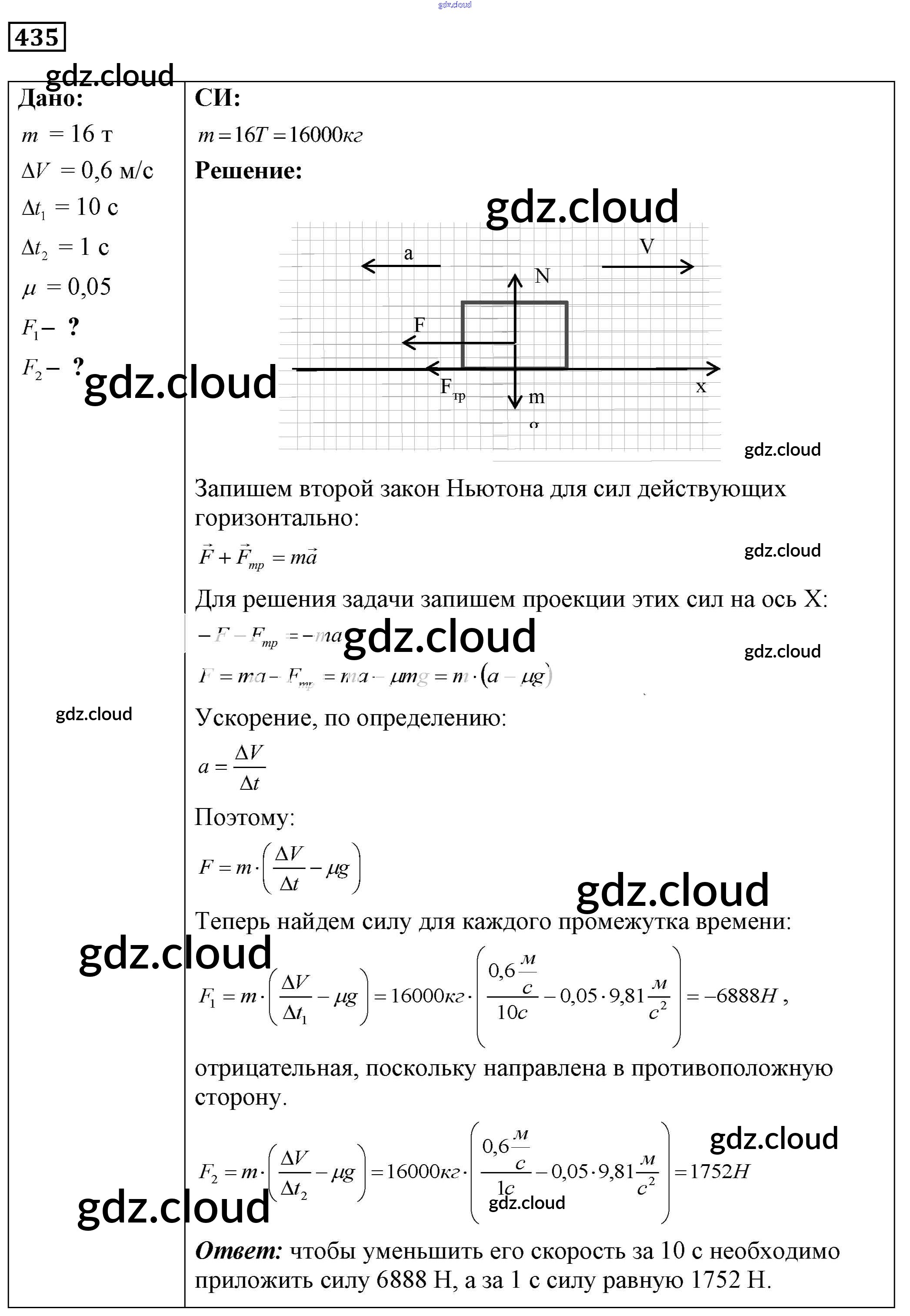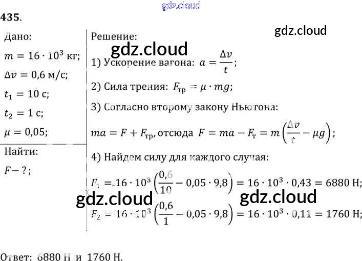 Ответ на задание 435 Сборник задач Физика за 7, 8, 9 (седьмой, восьмой, девятый) класс Лукашик, Иванова 2011