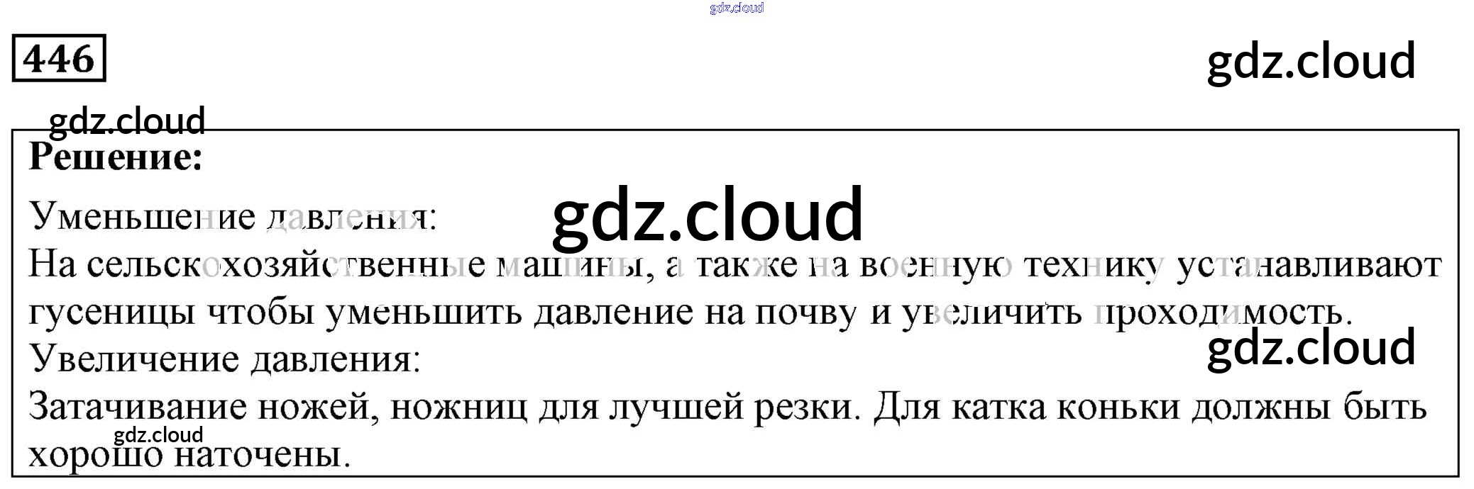 Ответ на задание 446 Сборник задач Физика за 7, 8, 9 (седьмой, восьмой, девятый) класс Лукашик, Иванова 2011