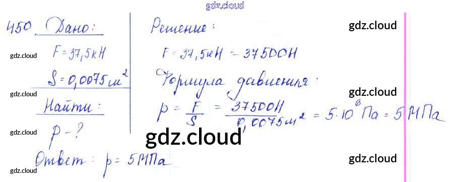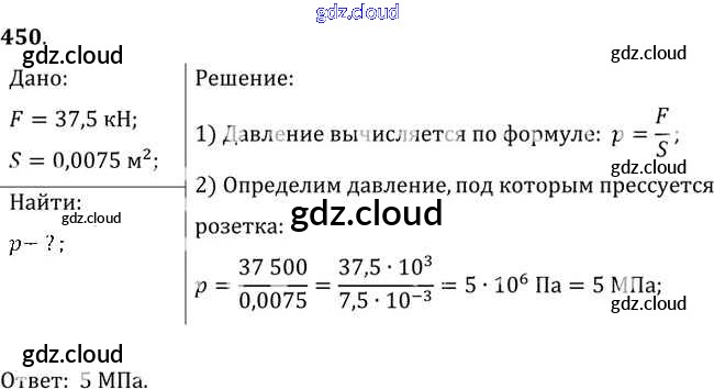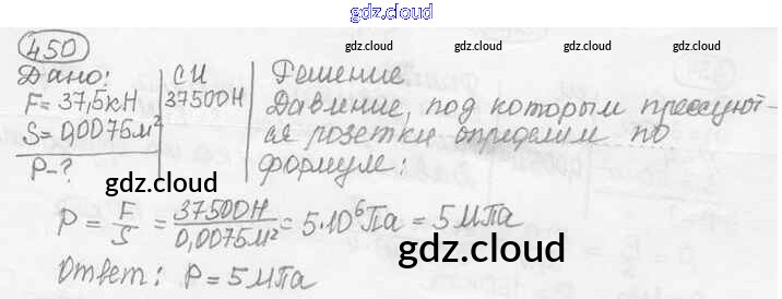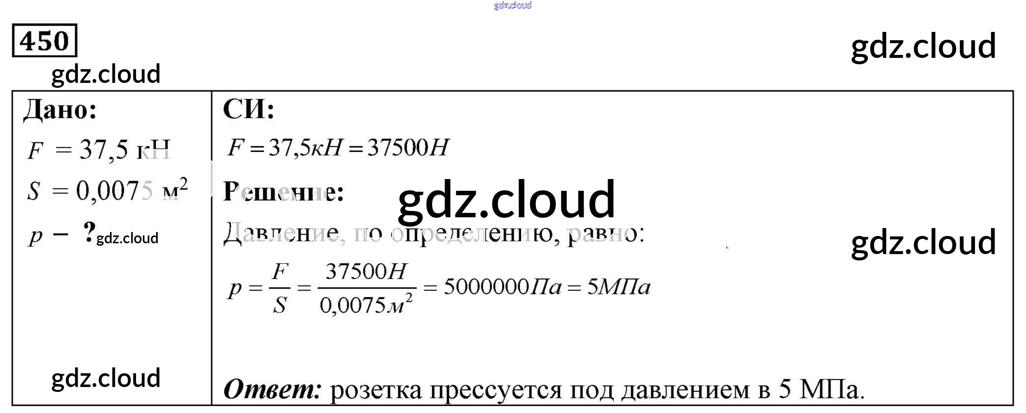 Ответ на задание 450 Сборник задач Физика за 7, 8, 9 (седьмой, восьмой, девятый) класс Лукашик, Иванова 2011