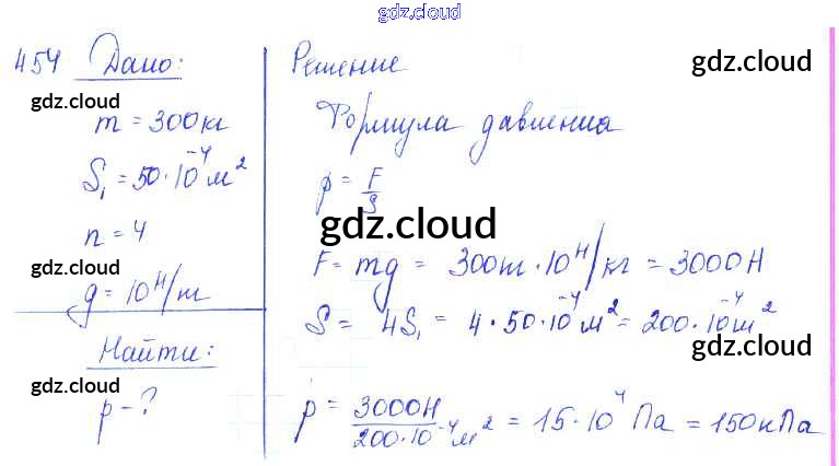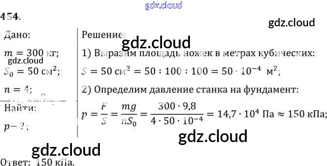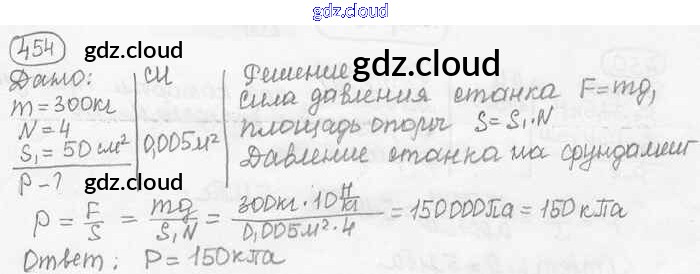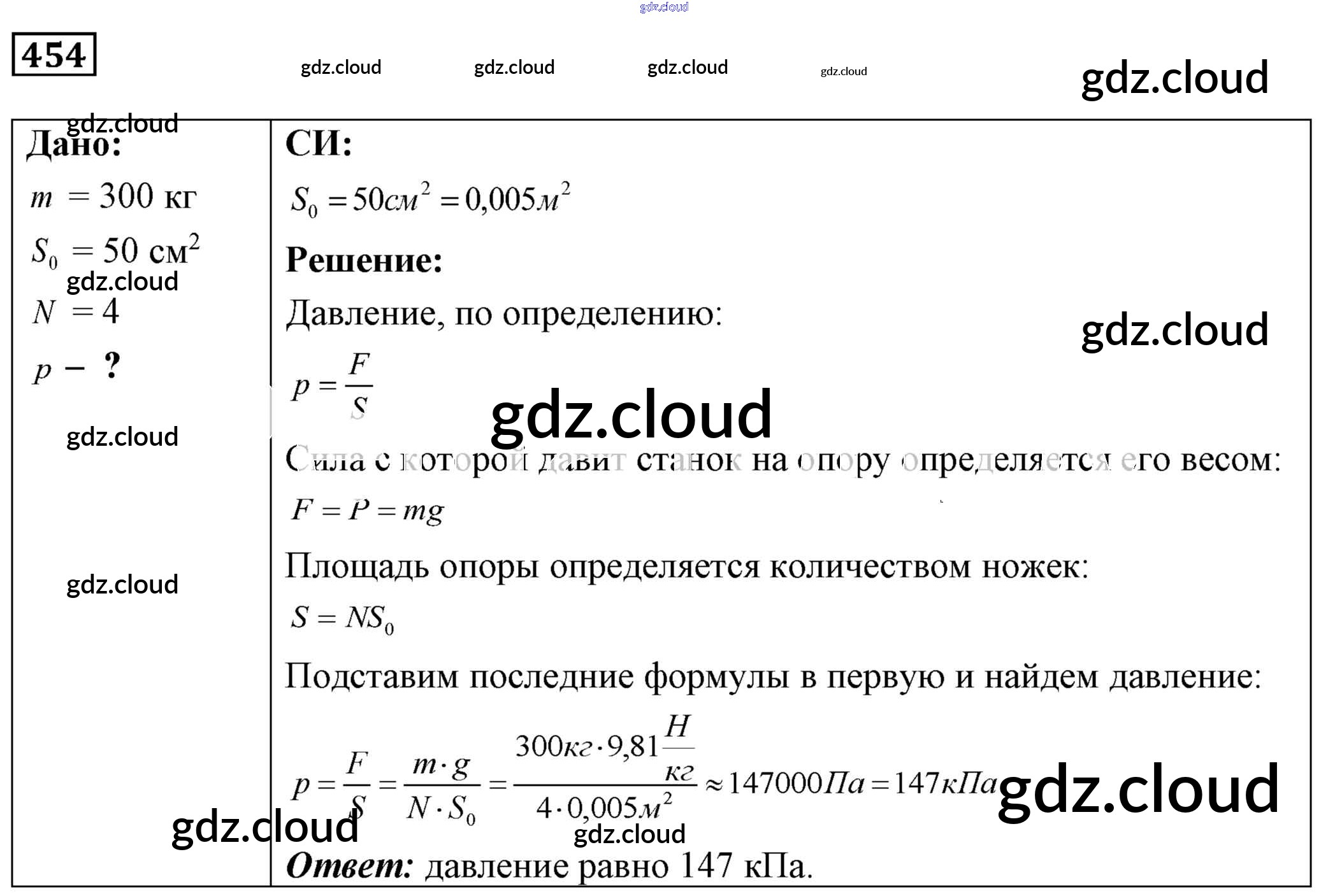 Ответ на задание 454 Сборник задач Физика за 7, 8, 9 (седьмой, восьмой, девятый) класс Лукашик, Иванова 2011