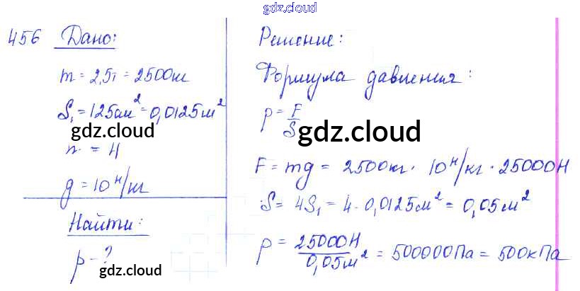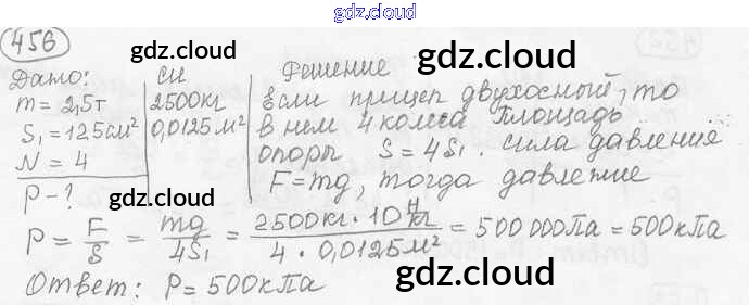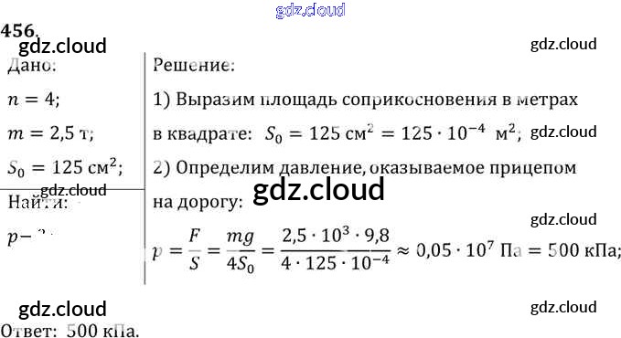 Ответ на задание 456 Сборник задач Физика за 7, 8, 9 (седьмой, восьмой, девятый) класс Лукашик, Иванова 2011