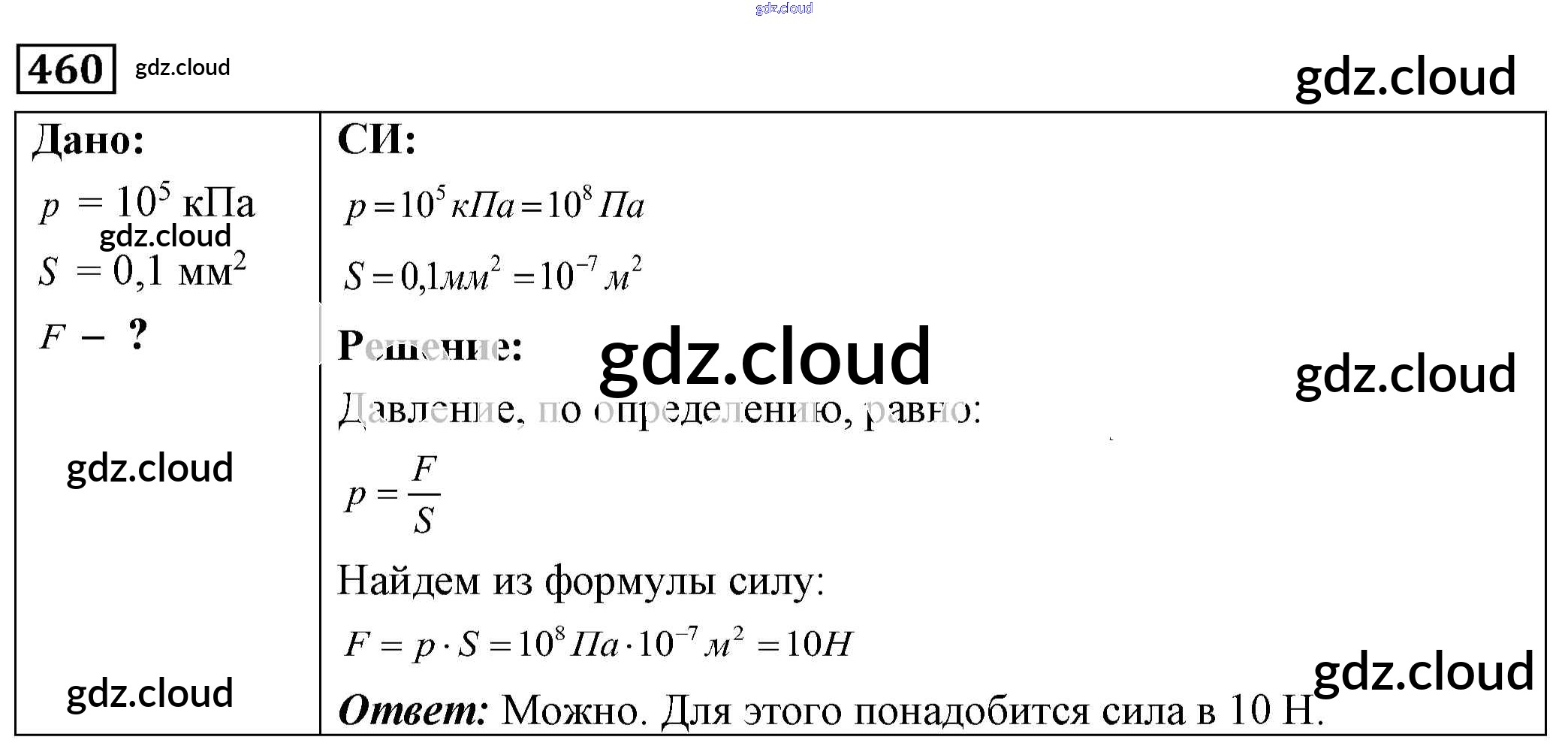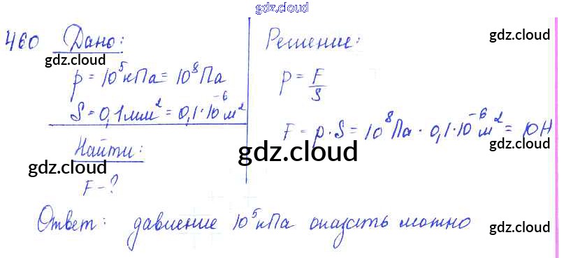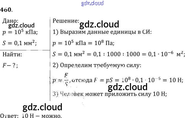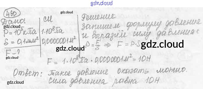 Ответ на задание 460 Сборник задач Физика за 7, 8, 9 (седьмой, восьмой, девятый) класс Лукашик, Иванова 2011