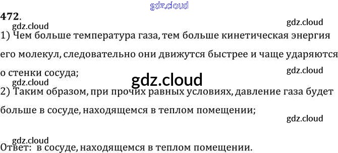 Ответ на задание 472 Сборник задач Физика за 7, 8, 9 (седьмой, восьмой, девятый) класс Лукашик, Иванова 2011