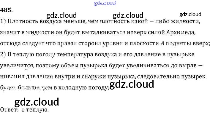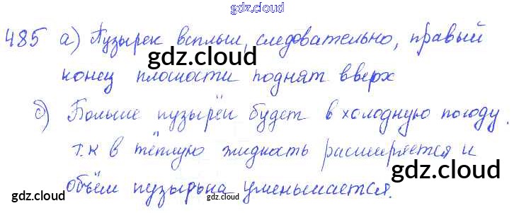 Ответ на задание 485 Сборник задач Физика за 7, 8, 9 (седьмой, восьмой, девятый) класс Лукашик, Иванова 2011