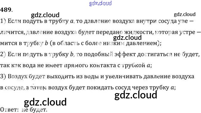 Ответ на задание 489 Сборник задач Физика за 7, 8, 9 (седьмой, восьмой, девятый) класс Лукашик, Иванова 2011