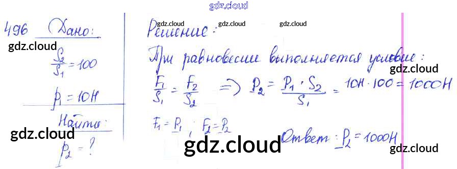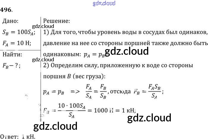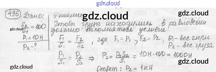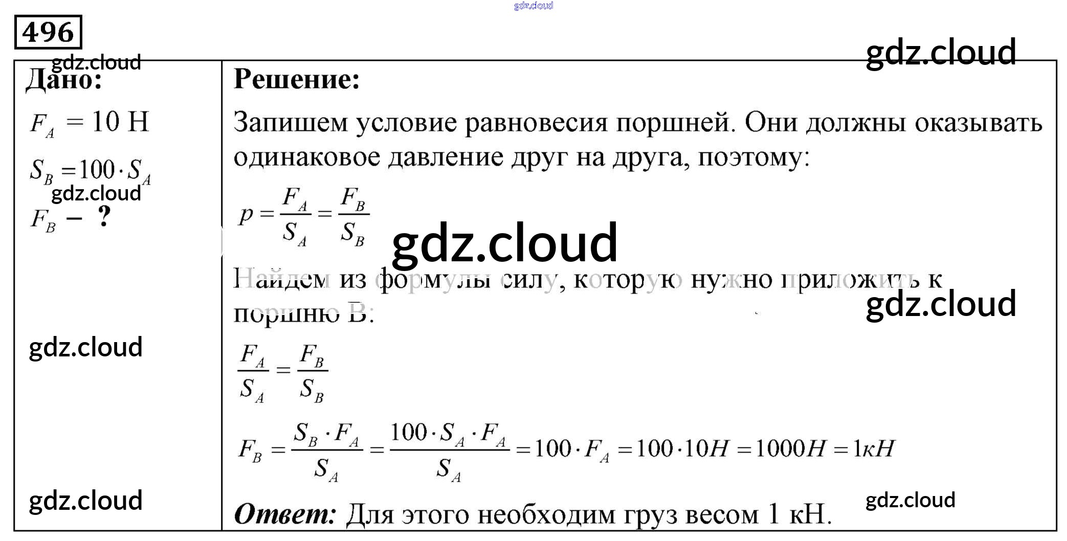 Ответ на задание 496 Сборник задач Физика за 7, 8, 9 (седьмой, восьмой, девятый) класс Лукашик, Иванова 2011
