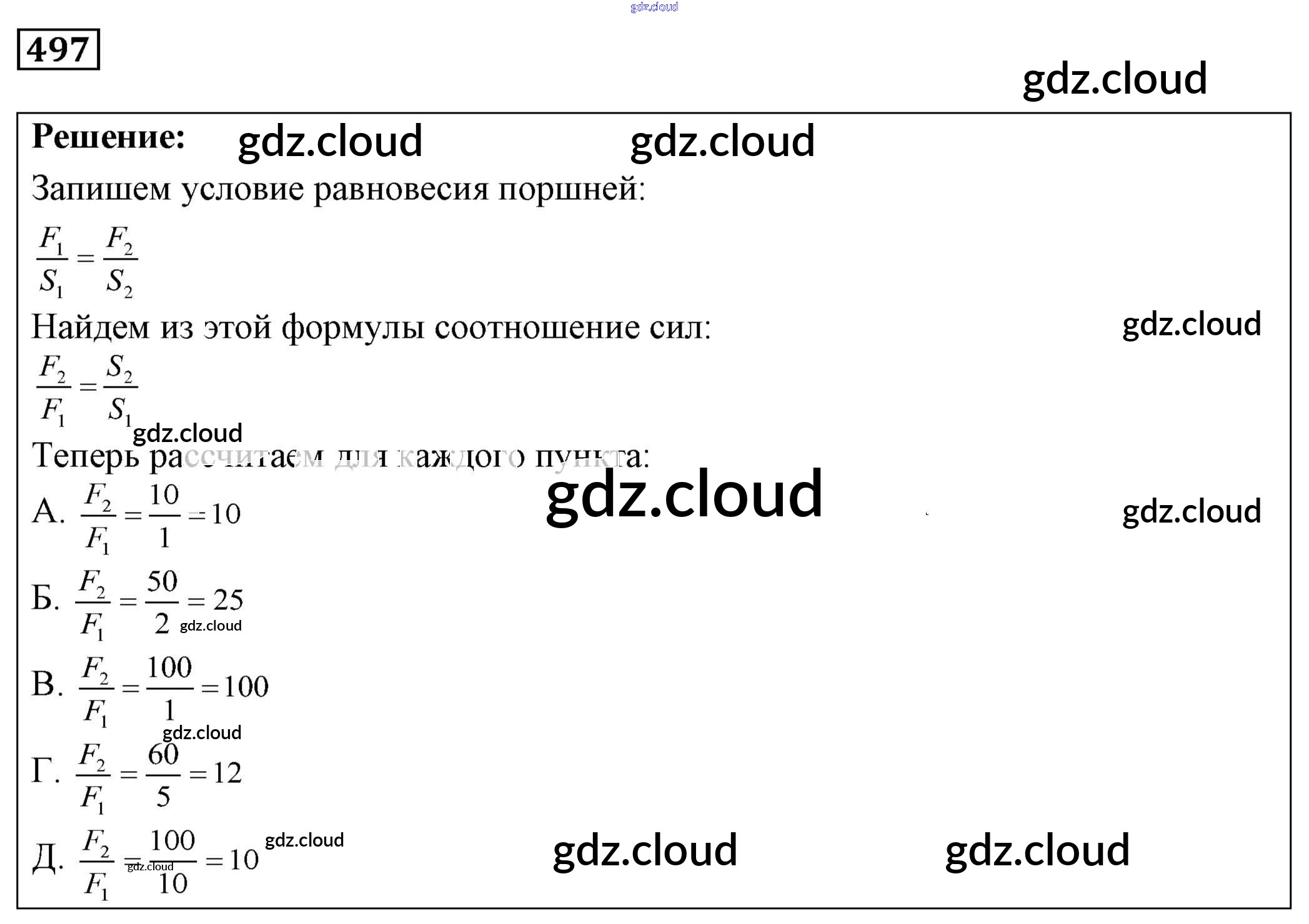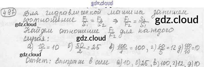 Ответ на задание 497 Сборник задач Физика за 7, 8, 9 (седьмой, восьмой, девятый) класс Лукашик, Иванова 2011