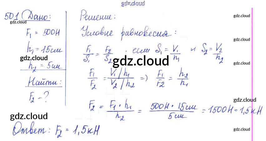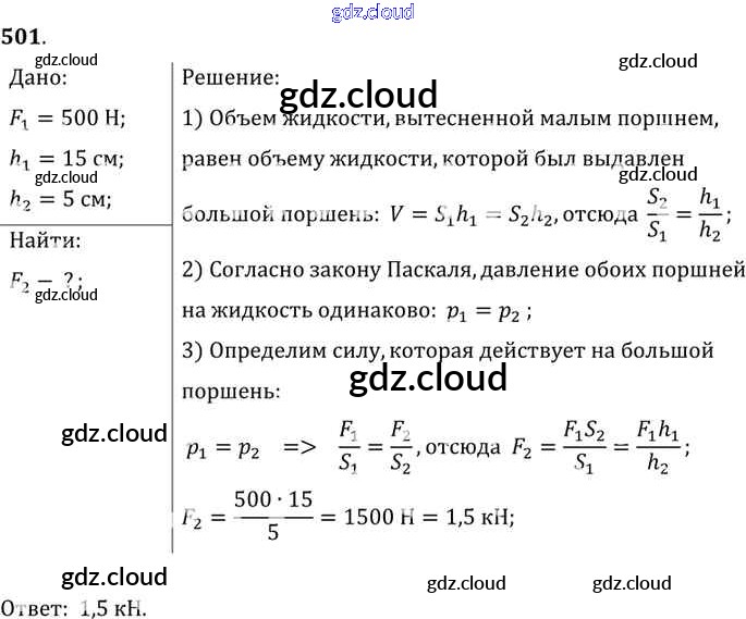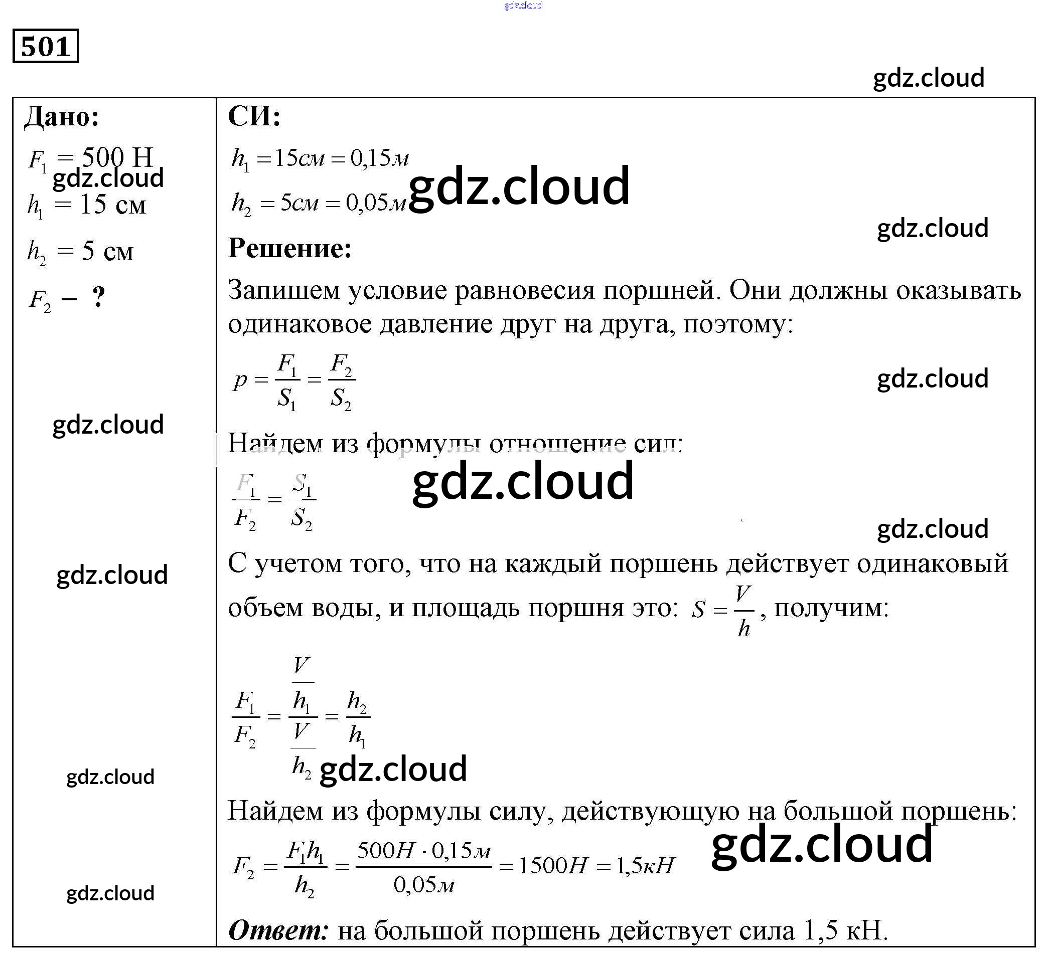 Ответ на задание 501 Сборник задач Физика за 7, 8, 9 (седьмой, восьмой, девятый) класс Лукашик, Иванова 2011