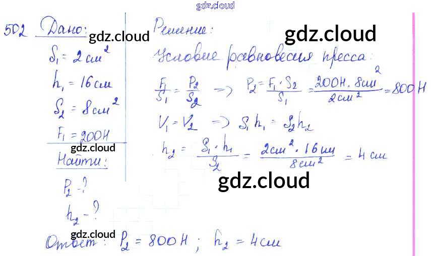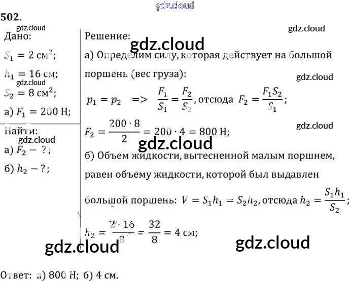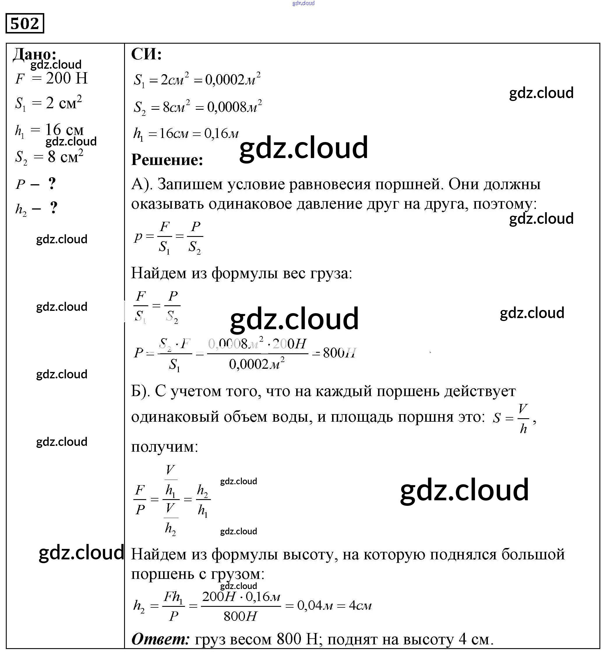 Ответ на задание 502 Сборник задач Физика за 7, 8, 9 (седьмой, восьмой, девятый) класс Лукашик, Иванова 2011