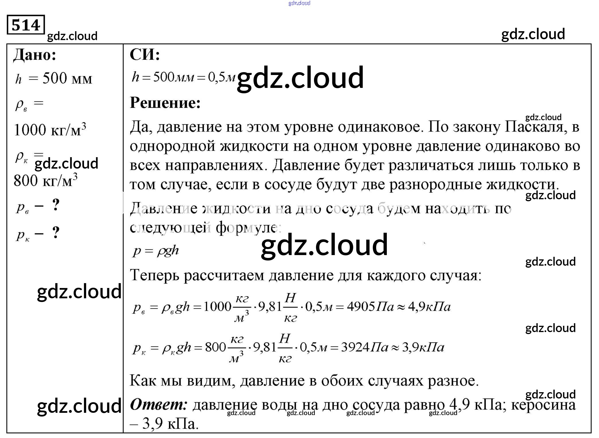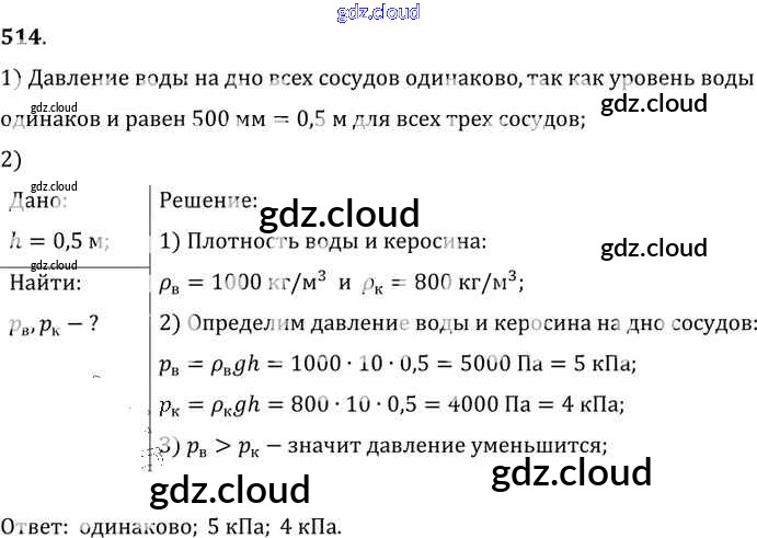 Ответ на задание 514 Сборник задач Физика за 7, 8, 9 (седьмой, восьмой, девятый) класс Лукашик, Иванова 2011