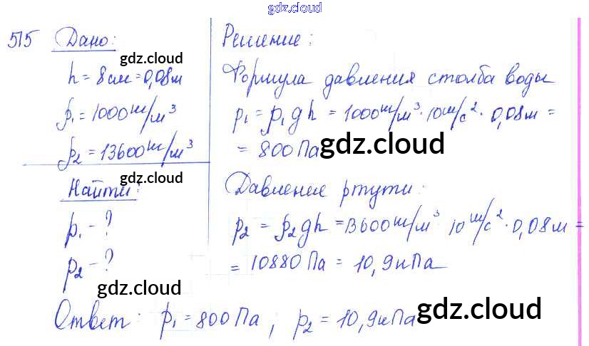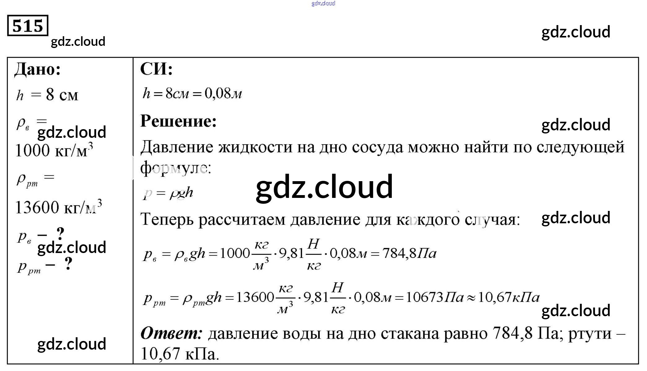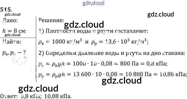 Ответ на задание 515 Сборник задач Физика за 7, 8, 9 (седьмой, восьмой, девятый) класс Лукашик, Иванова 2011
