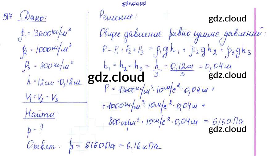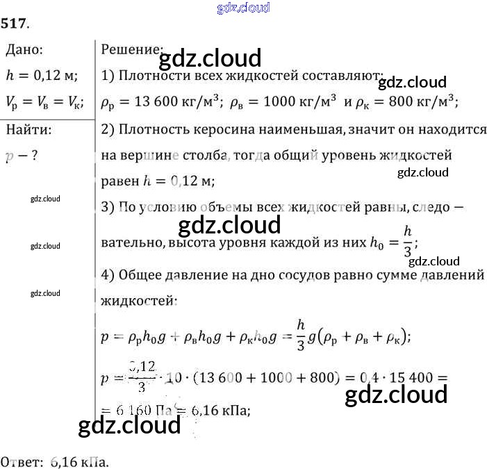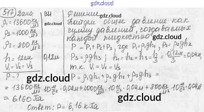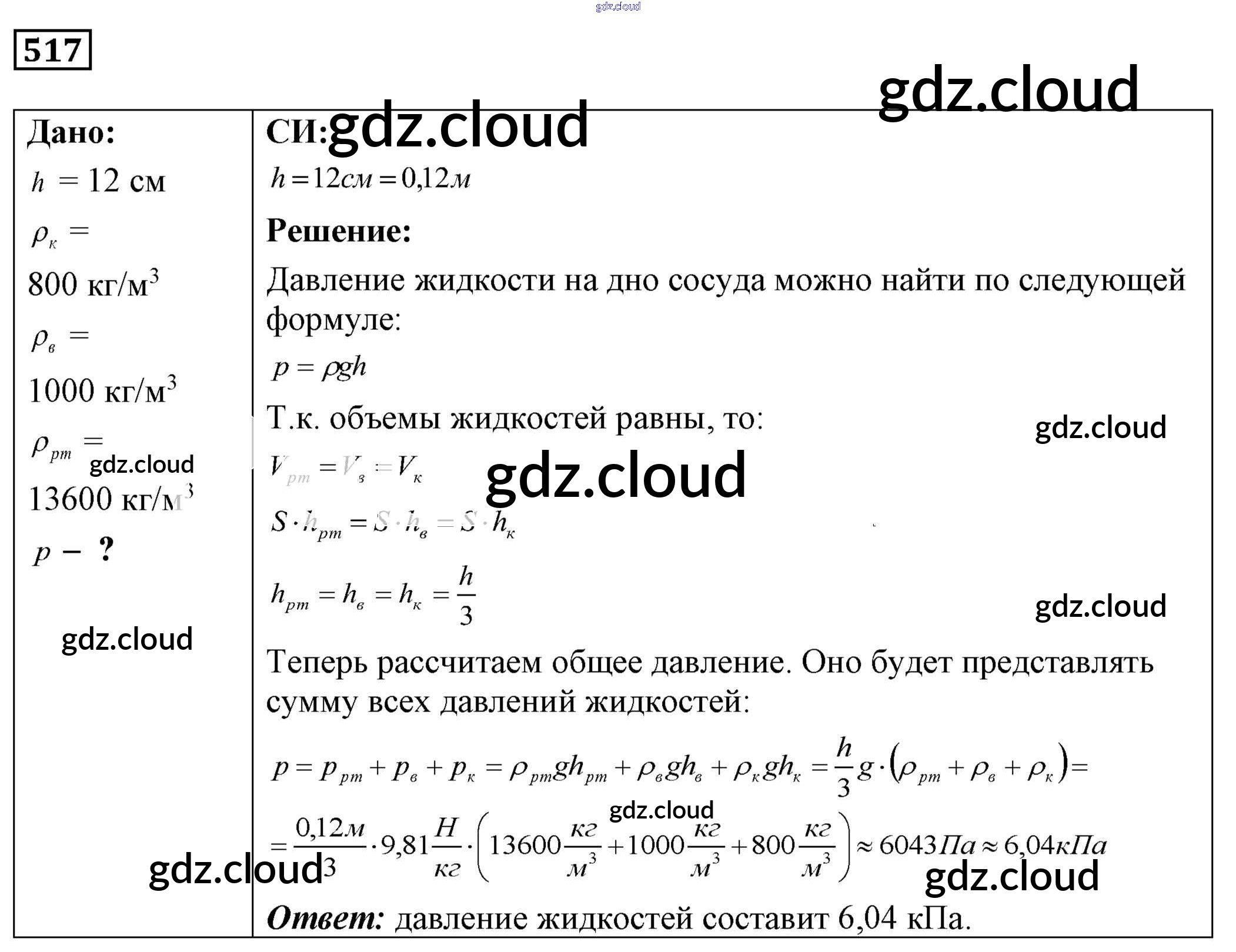 Ответ на задание 517 Сборник задач Физика за 7, 8, 9 (седьмой, восьмой, девятый) класс Лукашик, Иванова 2011