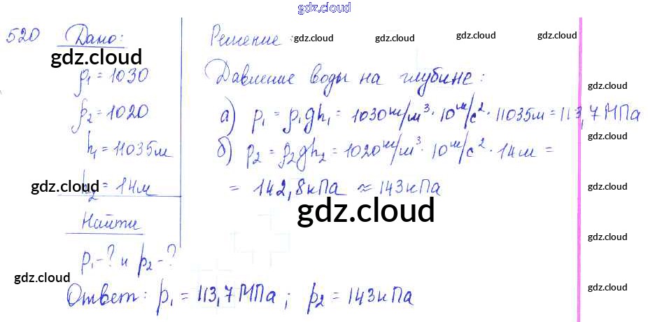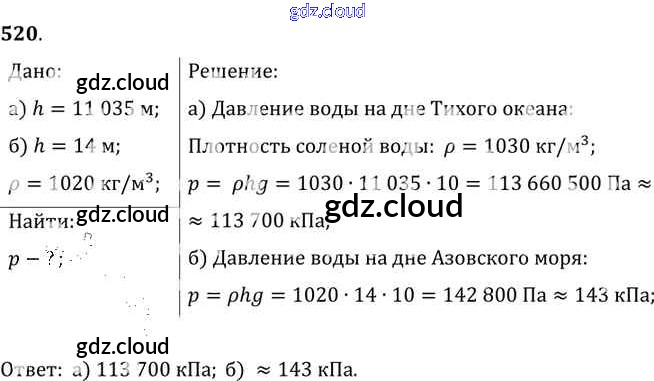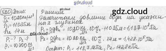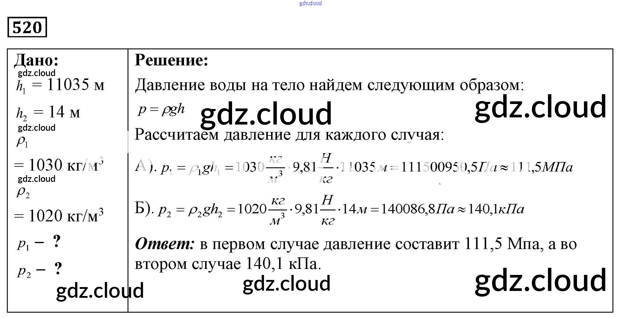 Ответ на задание 520 Сборник задач Физика за 7, 8, 9 (седьмой, восьмой, девятый) класс Лукашик, Иванова 2011