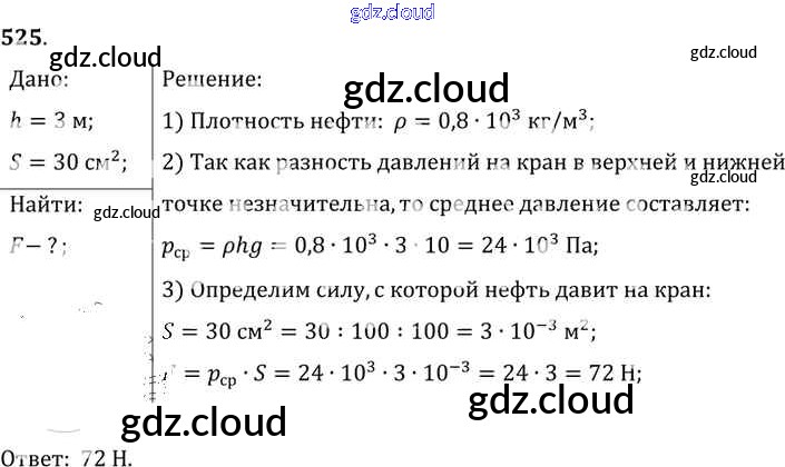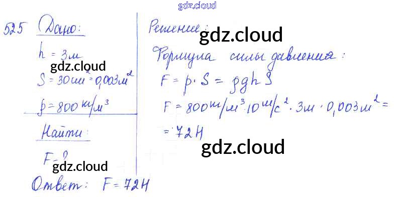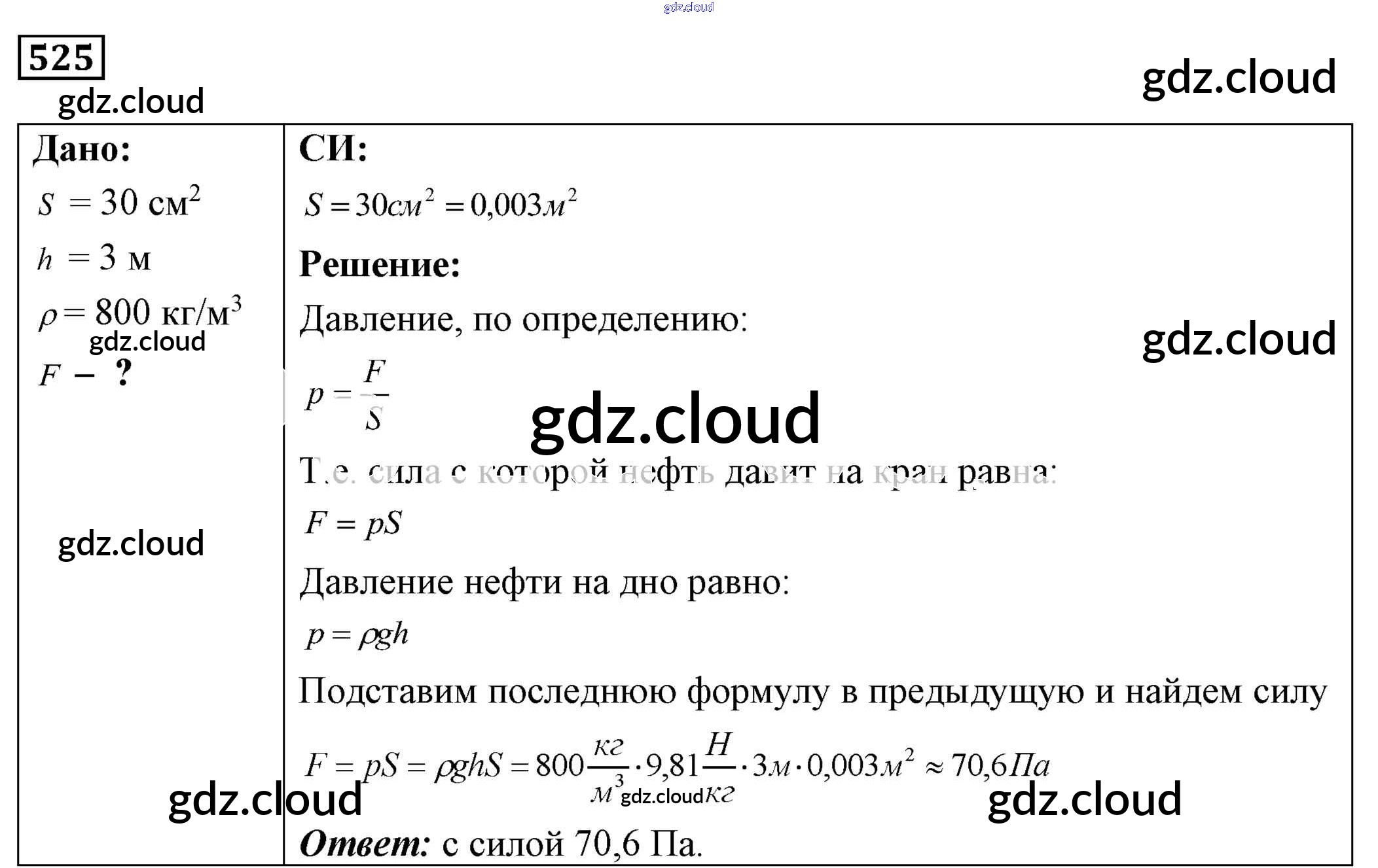 Ответ на задание 525 Сборник задач Физика за 7, 8, 9 (седьмой, восьмой, девятый) класс Лукашик, Иванова 2011