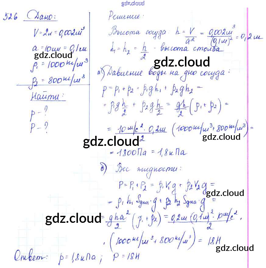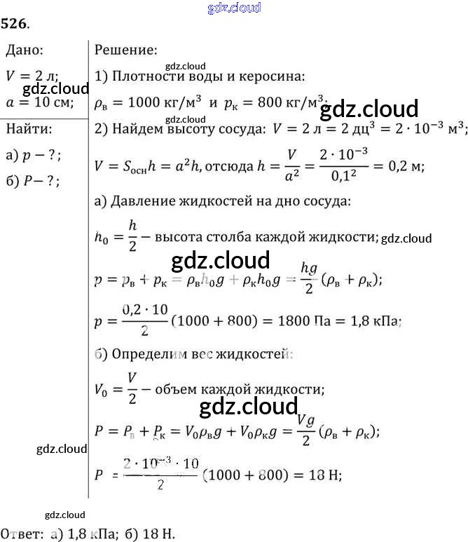 Ответ на задание 526 Сборник задач Физика за 7, 8, 9 (седьмой, восьмой, девятый) класс Лукашик, Иванова 2011