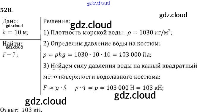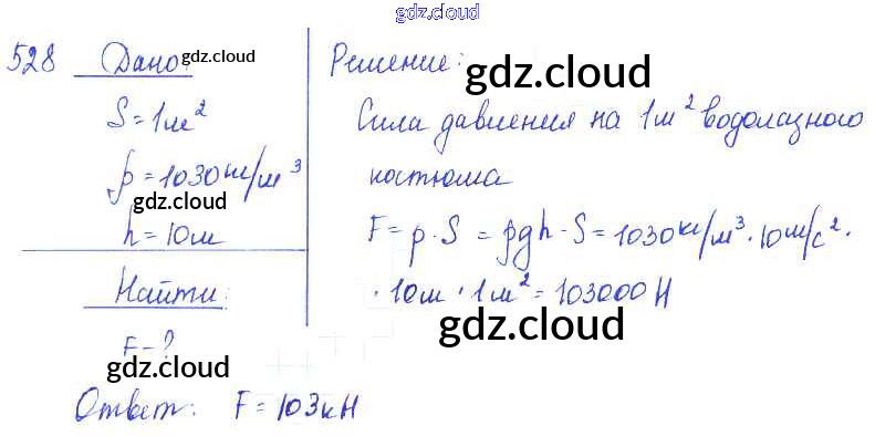 Ответ на задание 528 Сборник задач Физика за 7, 8, 9 (седьмой, восьмой, девятый) класс Лукашик, Иванова 2011