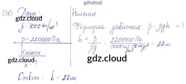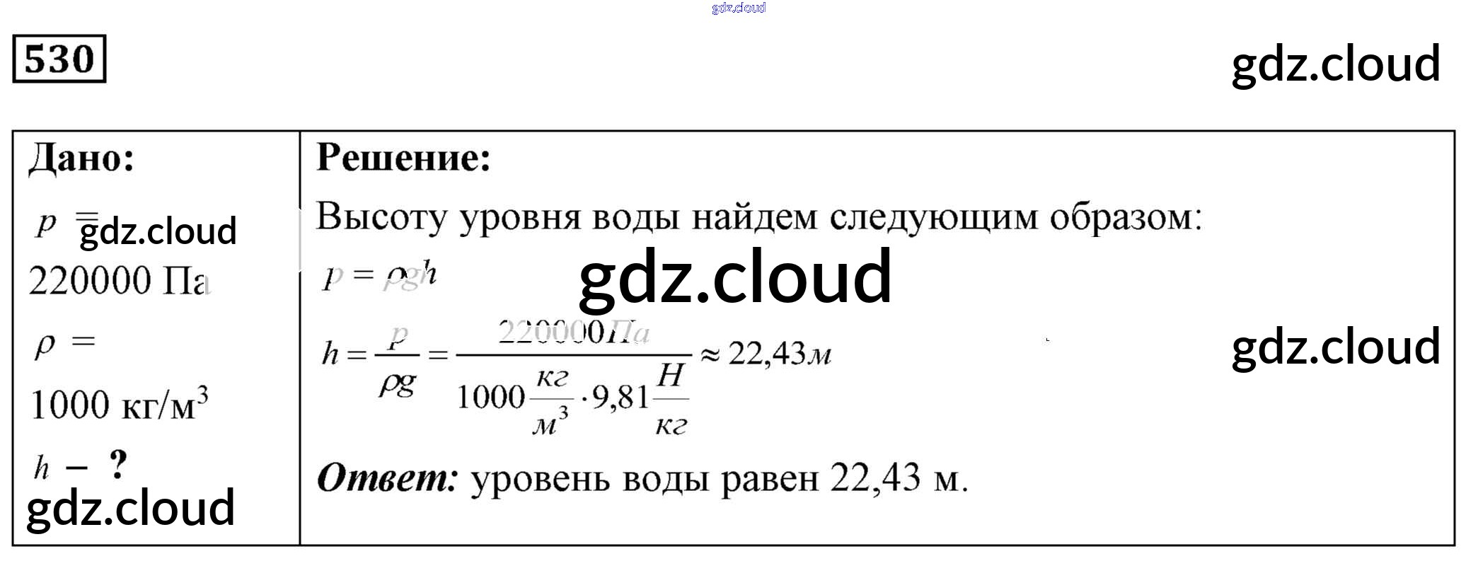Ответ на задание 530 Сборник задач Физика за 7, 8, 9 (седьмой, восьмой, девятый) класс Лукашик, Иванова 2011