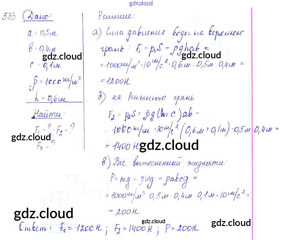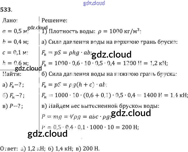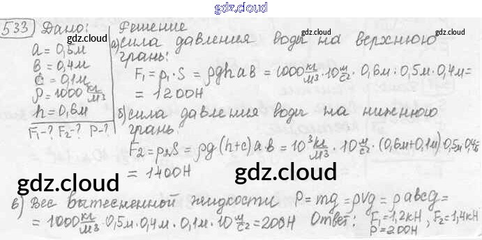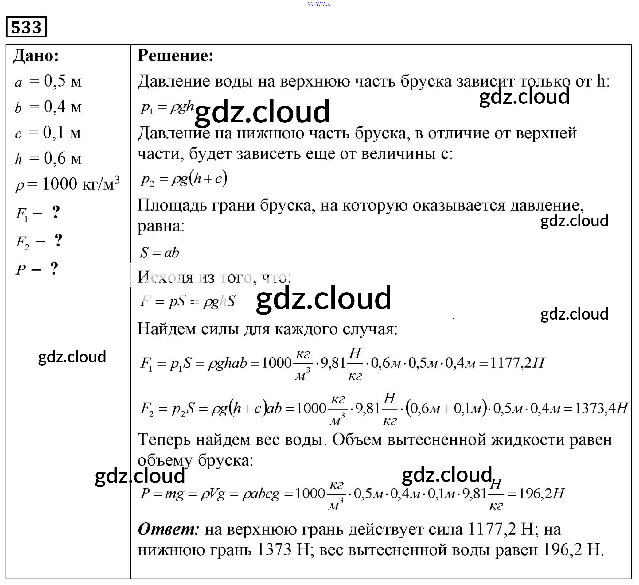 Ответ на задание 533 Сборник задач Физика за 7, 8, 9 (седьмой, восьмой, девятый) класс Лукашик, Иванова 2011