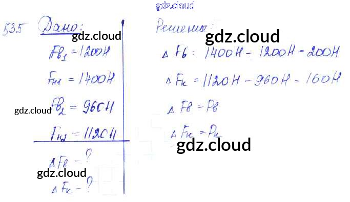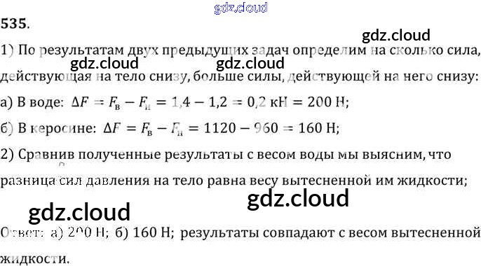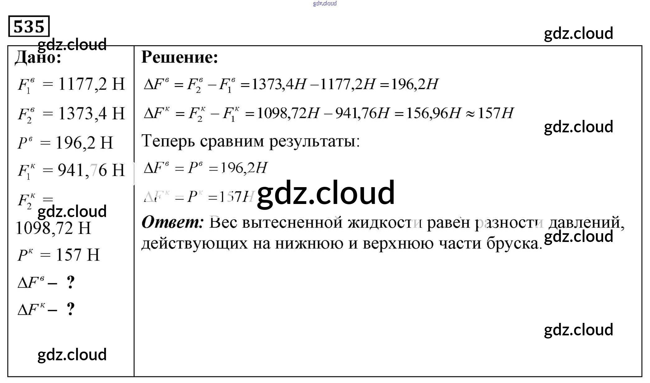 Ответ на задание 535 Сборник задач Физика за 7, 8, 9 (седьмой, восьмой, девятый) класс Лукашик, Иванова 2011