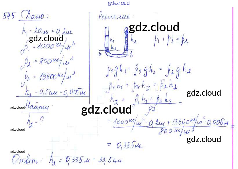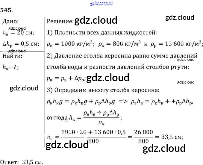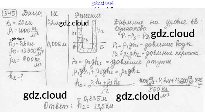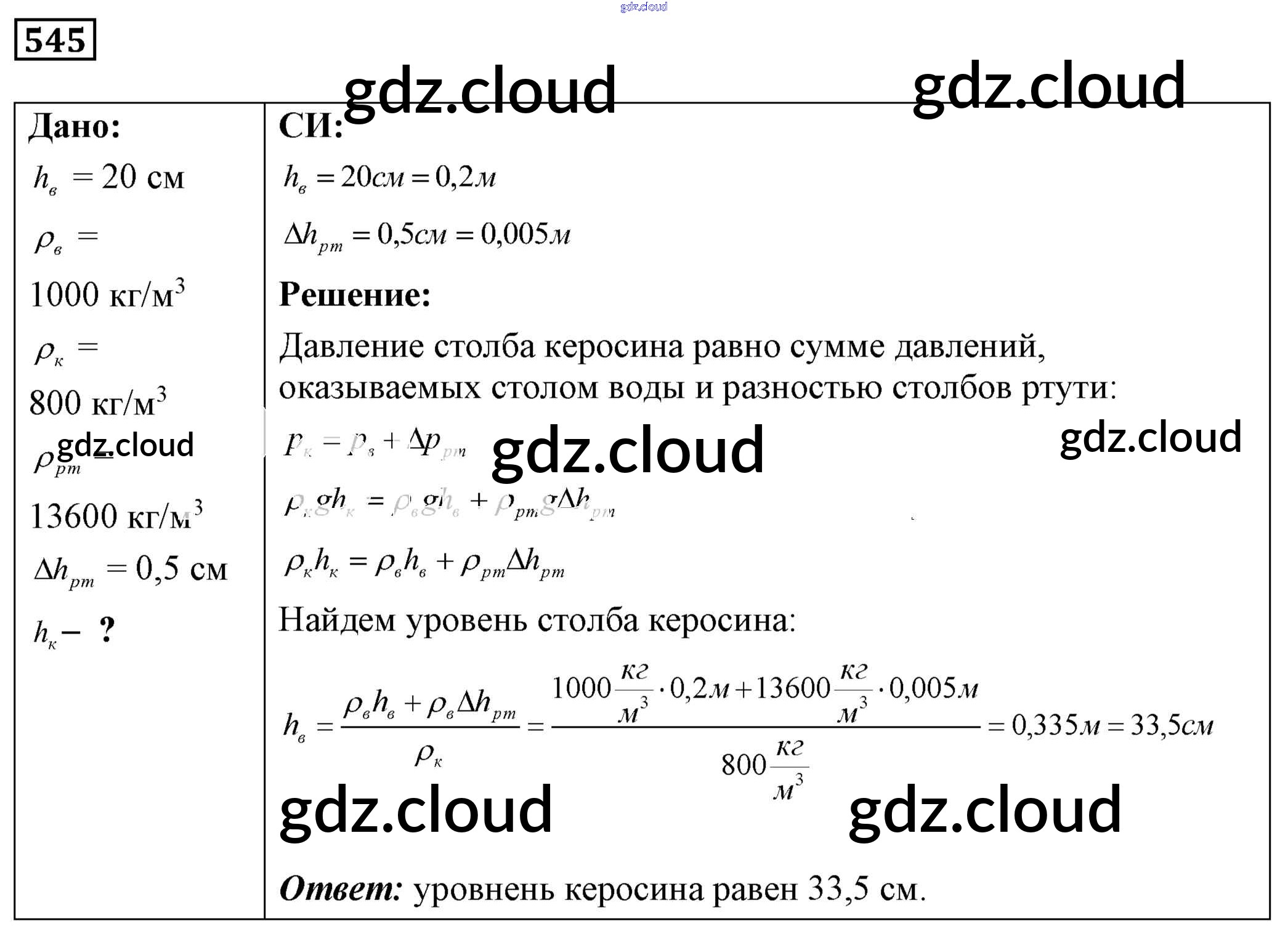 Ответ на задание 545 Сборник задач Физика за 7, 8, 9 (седьмой, восьмой, девятый) класс Лукашик, Иванова 2011