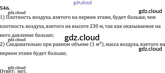 Ответ на задание 546 Сборник задач Физика за 7, 8, 9 (седьмой, восьмой, девятый) класс Лукашик, Иванова 2011