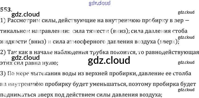 Ответ на задание 553 Сборник задач Физика за 7, 8, 9 (седьмой, восьмой, девятый) класс Лукашик, Иванова 2011