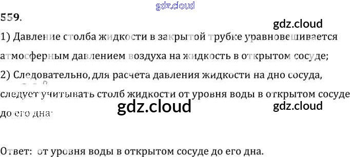 Ответ на задание 559 Сборник задач Физика за 7, 8, 9 (седьмой, восьмой, девятый) класс Лукашик, Иванова 2011