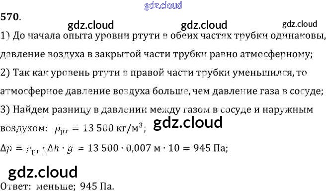 Ответ на задание 570 Сборник задач Физика за 7, 8, 9 (седьмой, восьмой, девятый) класс Лукашик, Иванова 2011