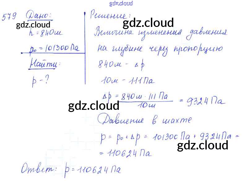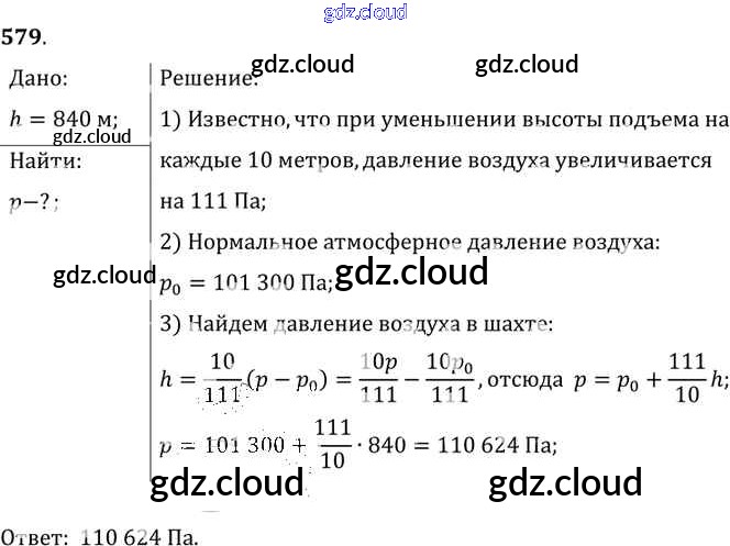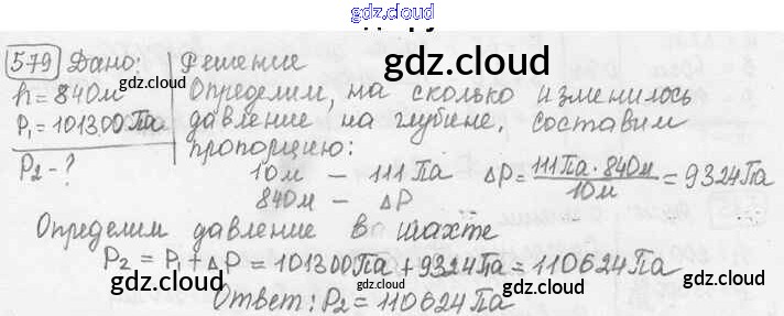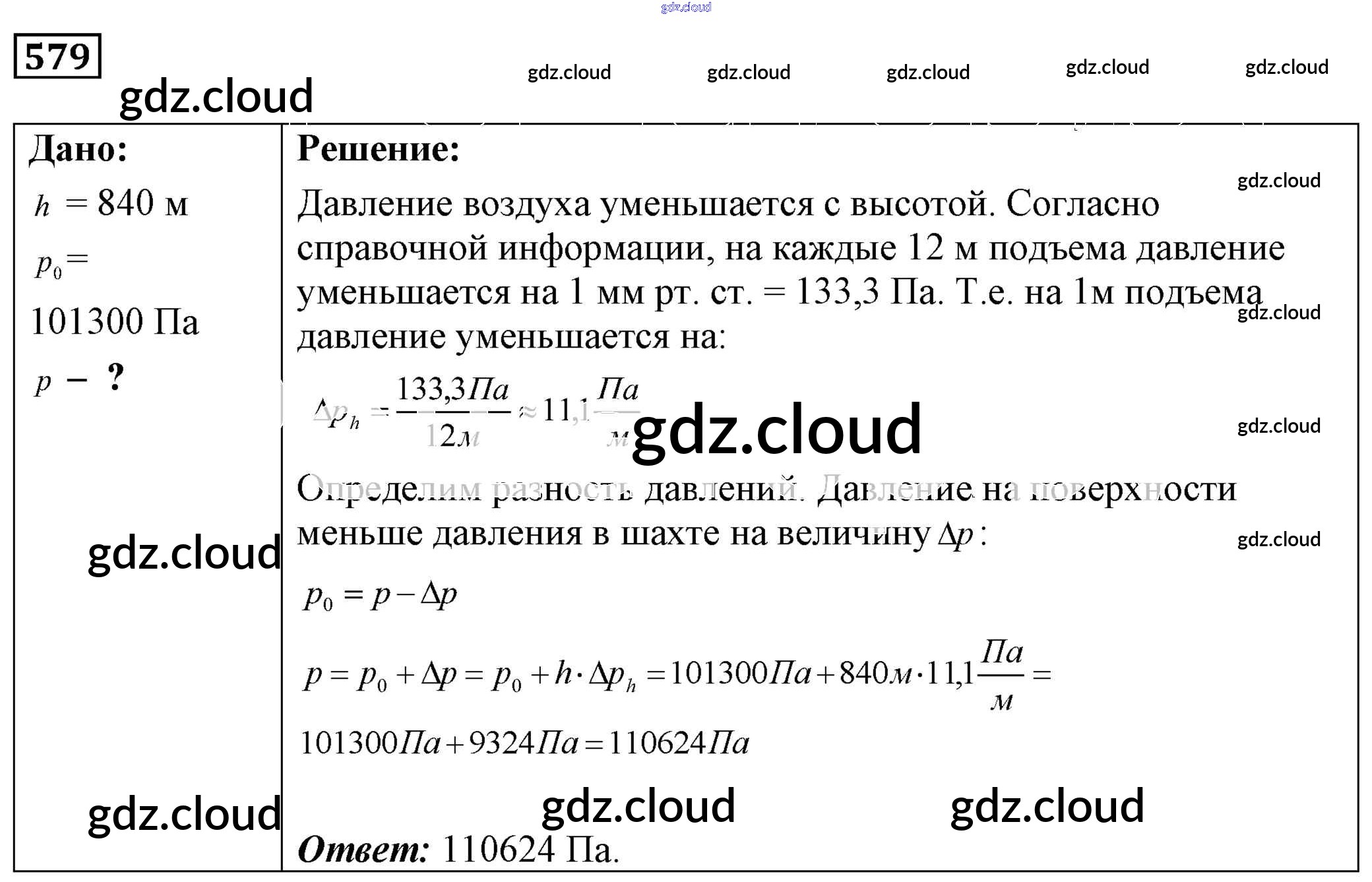 Ответ на задание 579 Сборник задач Физика за 7, 8, 9 (седьмой, восьмой, девятый) класс Лукашик, Иванова 2011