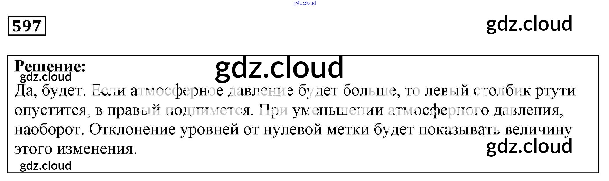 Ответ на задание 597 Сборник задач Физика за 7, 8, 9 (седьмой, восьмой, девятый) класс Лукашик, Иванова 2011