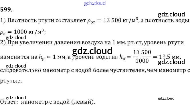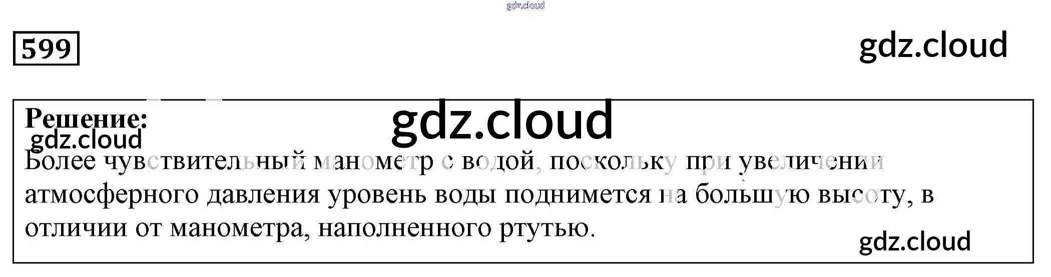 Ответ на задание 599 Сборник задач Физика за 7, 8, 9 (седьмой, восьмой, девятый) класс Лукашик, Иванова 2011