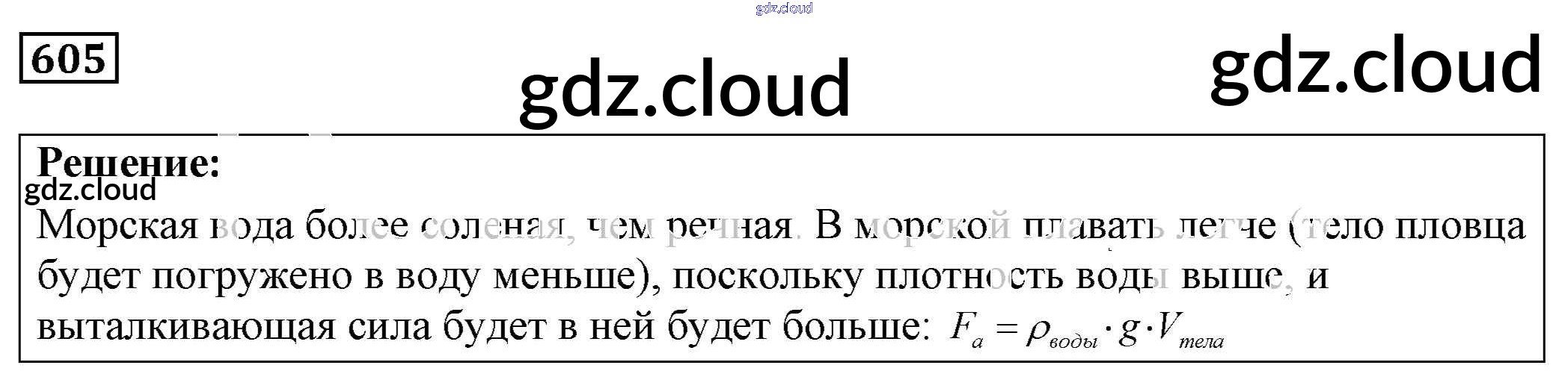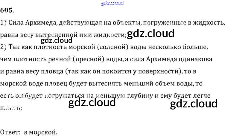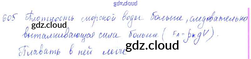 Ответ на задание 605 Сборник задач Физика за 7, 8, 9 (седьмой, восьмой, девятый) класс Лукашик, Иванова 2011