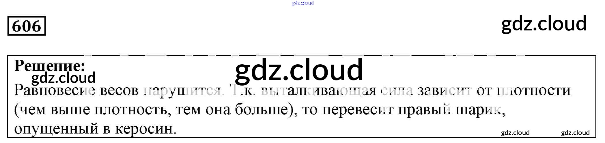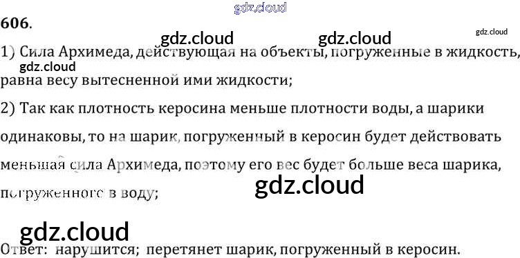 Ответ на задание 606 Сборник задач Физика за 7, 8, 9 (седьмой, восьмой, девятый) класс Лукашик, Иванова 2011